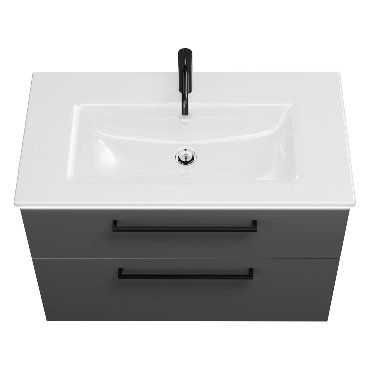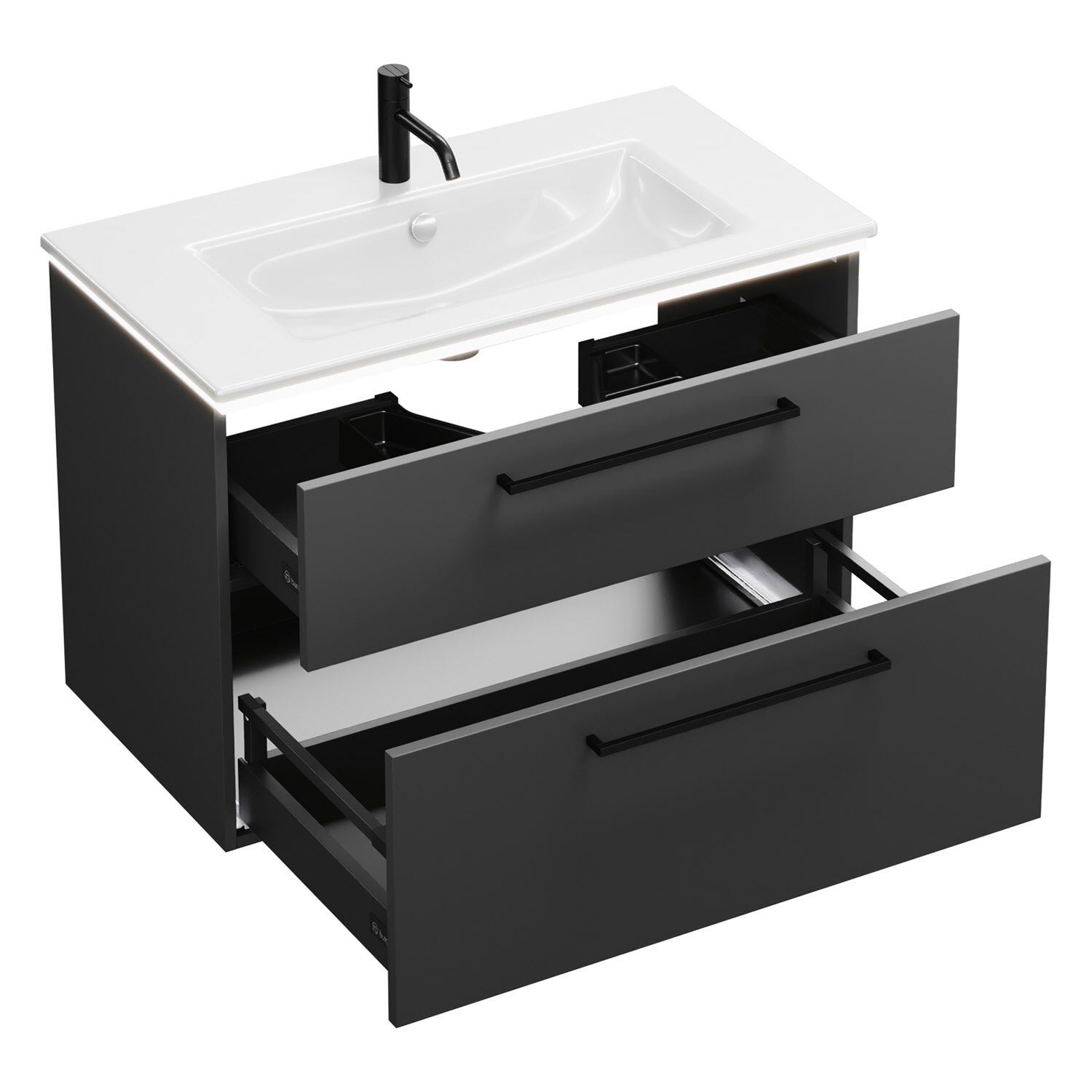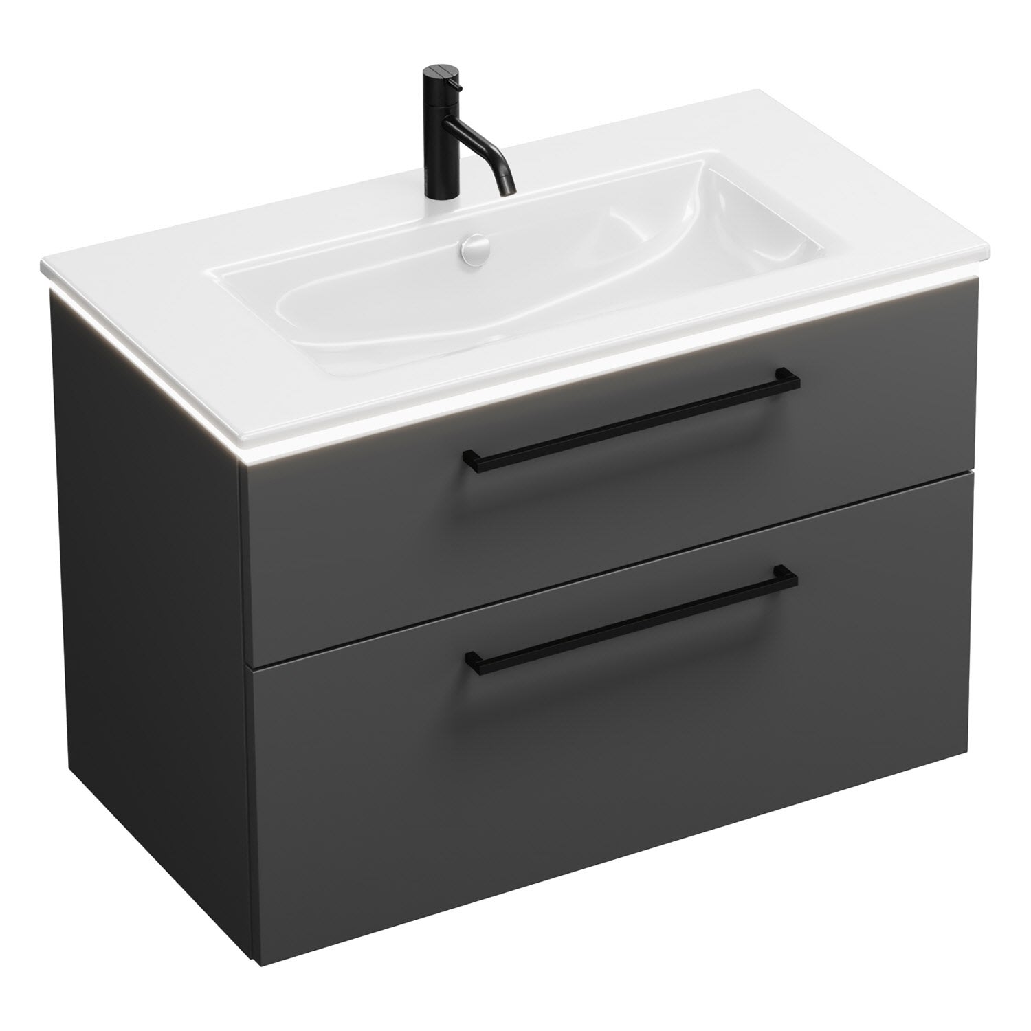 burgbad Eqio Waschtischkombination mit Keramik-Waschtisch Slim und LED-Beleuchtung, 92 cm, mit Stangengriff G0234