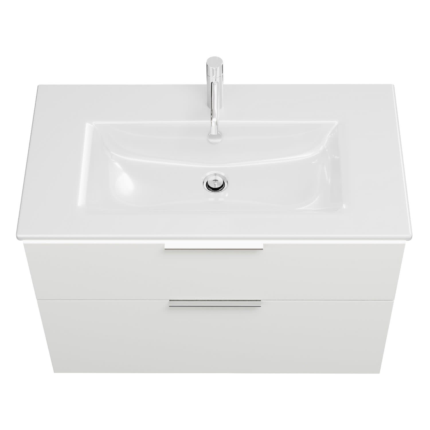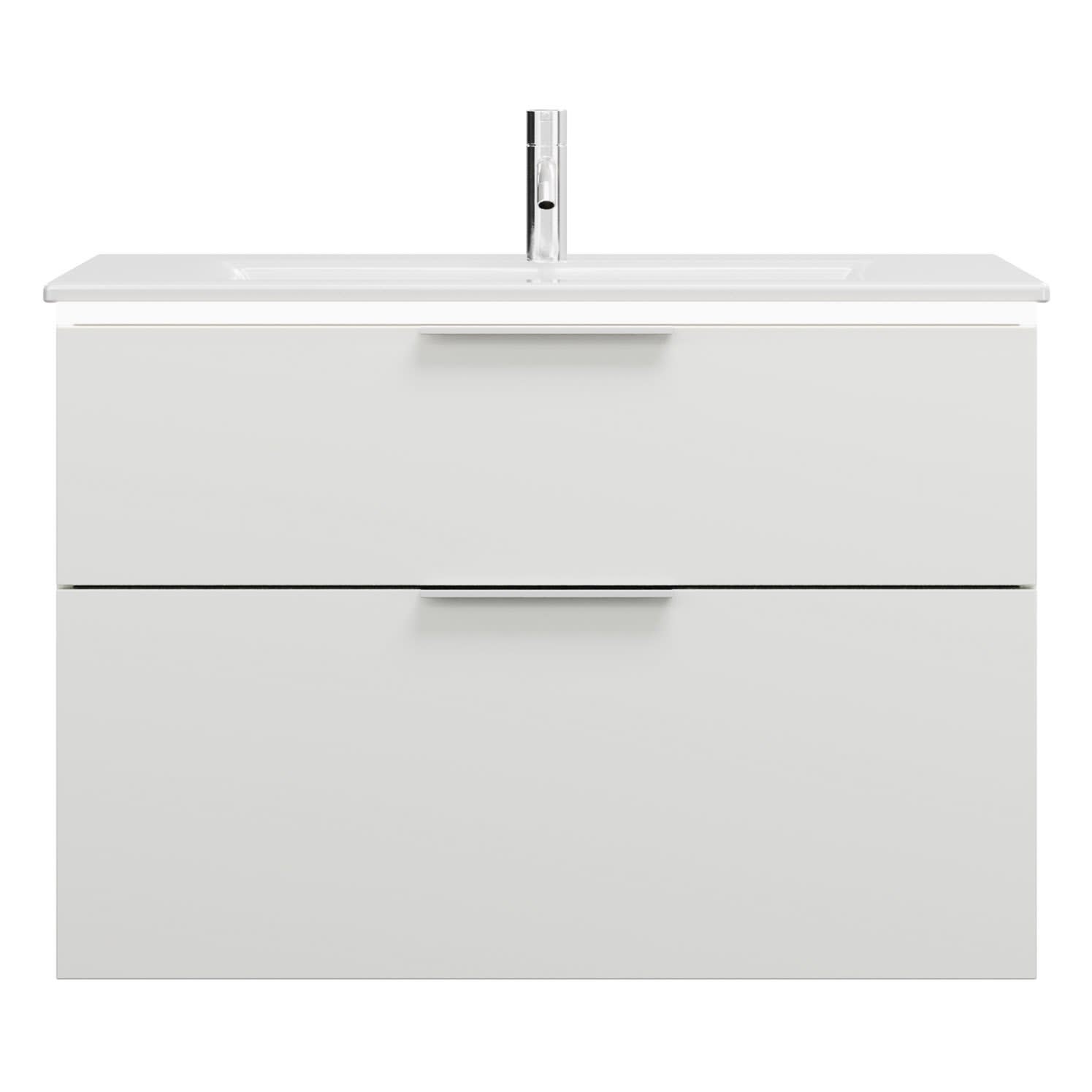 burgbad Eqio Waschtischkombination mit Keramik-Waschtisch Slim und LED-Beleuchtung, 92 cm, mit Griff G0146