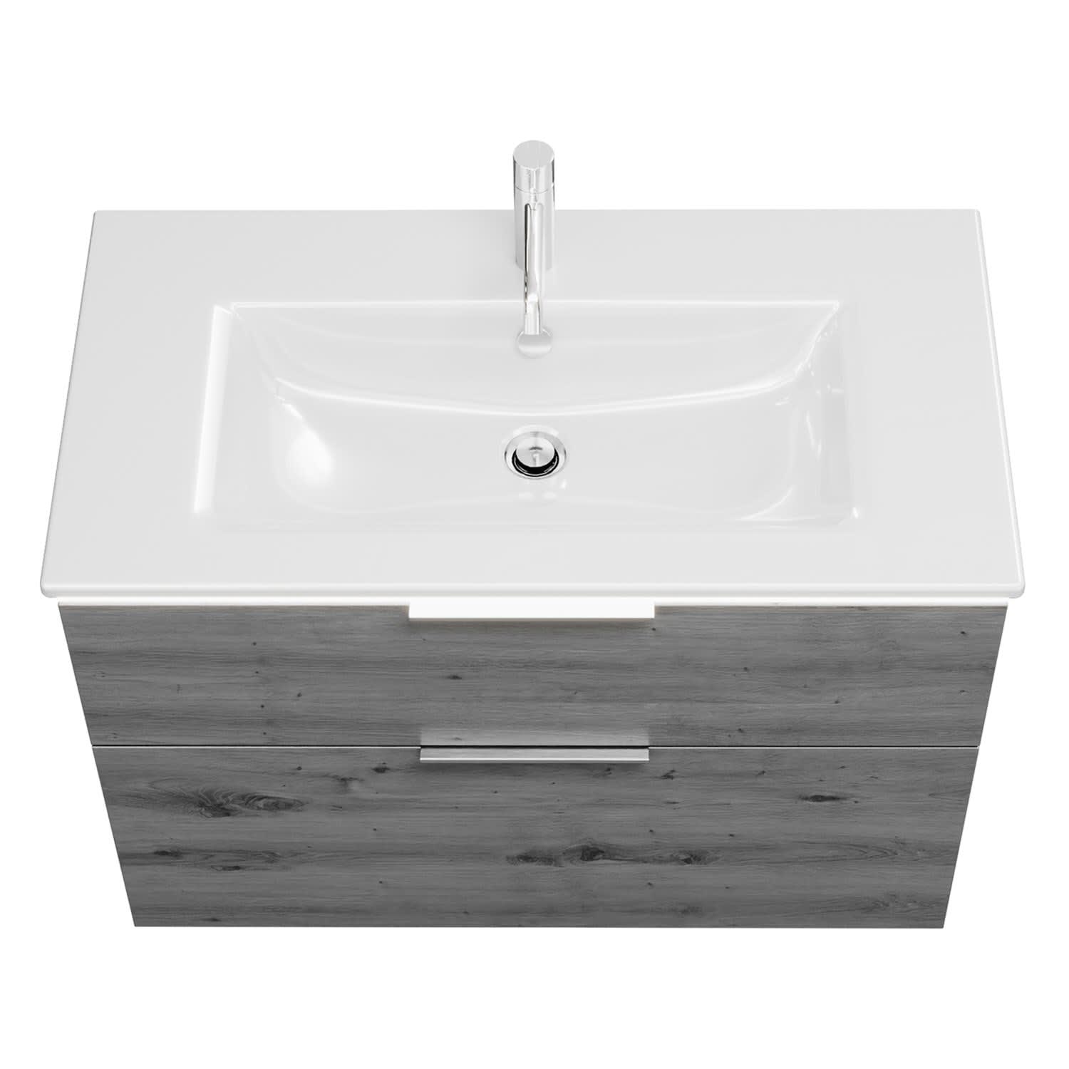 burgbad Eqio Waschtischkombination mit Keramik-Waschtisch Slim und LED-Beleuchtung, 92 cm, mit Griff G0146