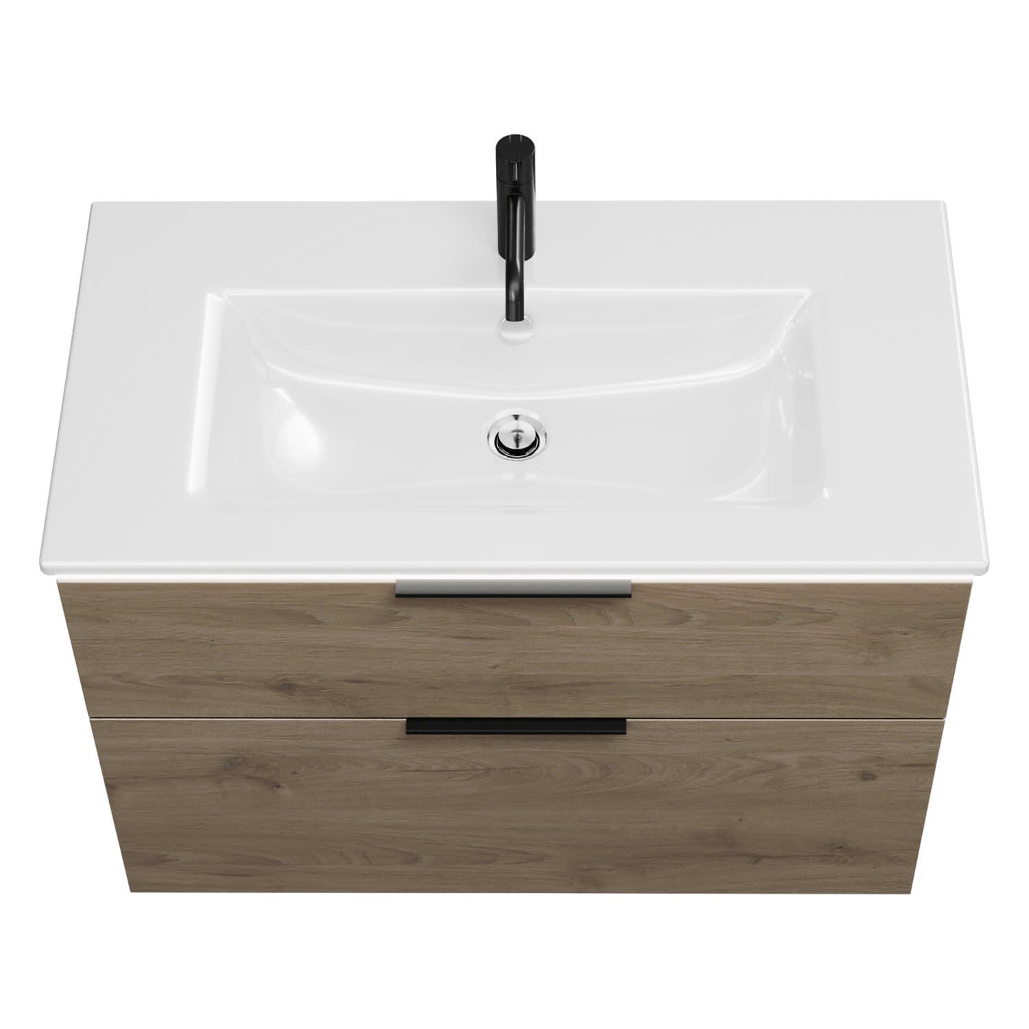 - 1 Schublade oben, 35 cm tief, mit Siphonausschnitt und Inneneinteilung