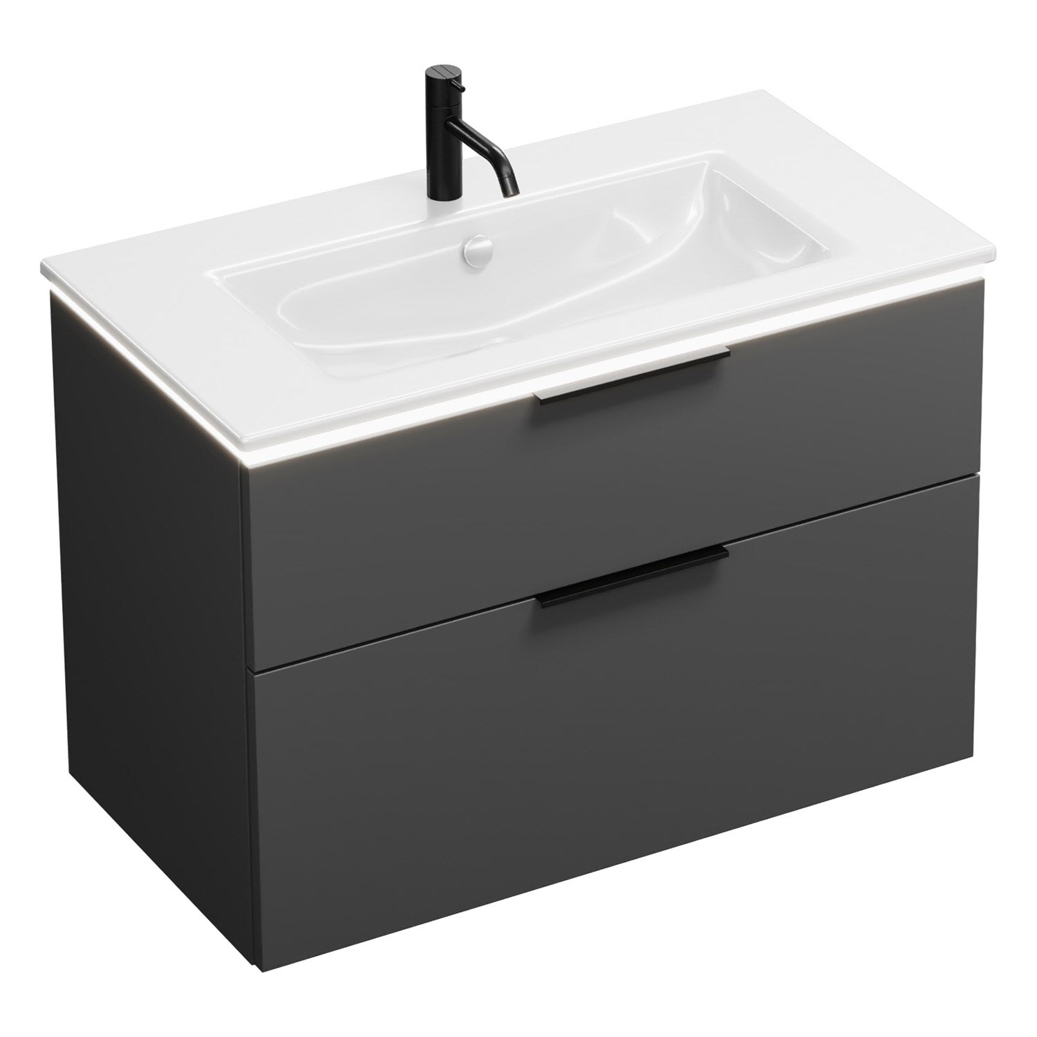 burgbad Eqio Waschtischkombination mit Keramik-Waschtisch Slim und LED-Beleuchtung, 92 cm, mit Griff G0200