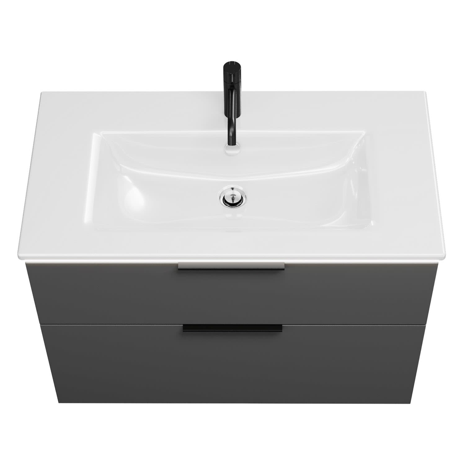 - 1 Schublade oben, 35 cm tief, mit Siphonausschnitt und Inneneinteilung