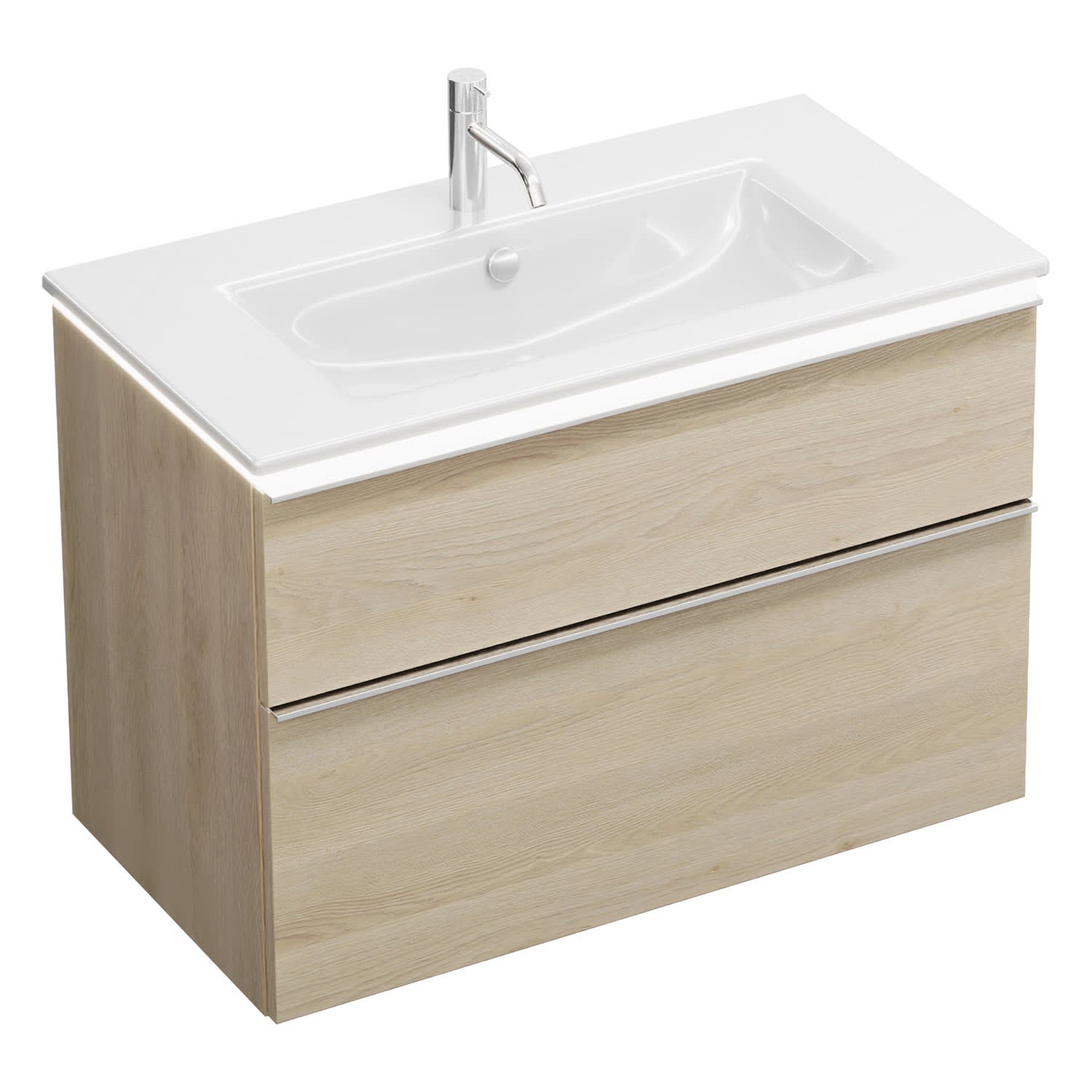 burgbad Eqio Waschtischkombination mit Keramik-Waschtisch Slim und LED-Beleuchtung, 92 cm, mit Griffleiste G0251
