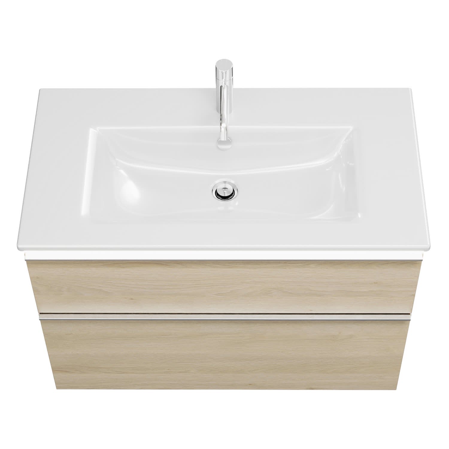 - 1 Schublade oben, 35 cm tief, mit Siphonausschnitt und Inneneinteilung