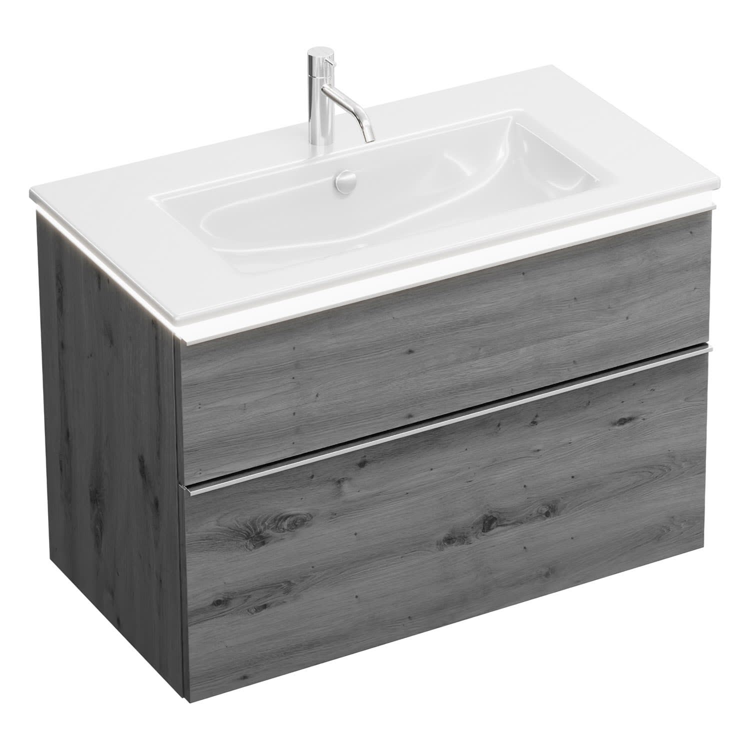 burgbad Eqio Waschtischkombination mit Keramik-Waschtisch Slim und LED-Beleuchtung, 92 cm, mit Griffleiste G0251