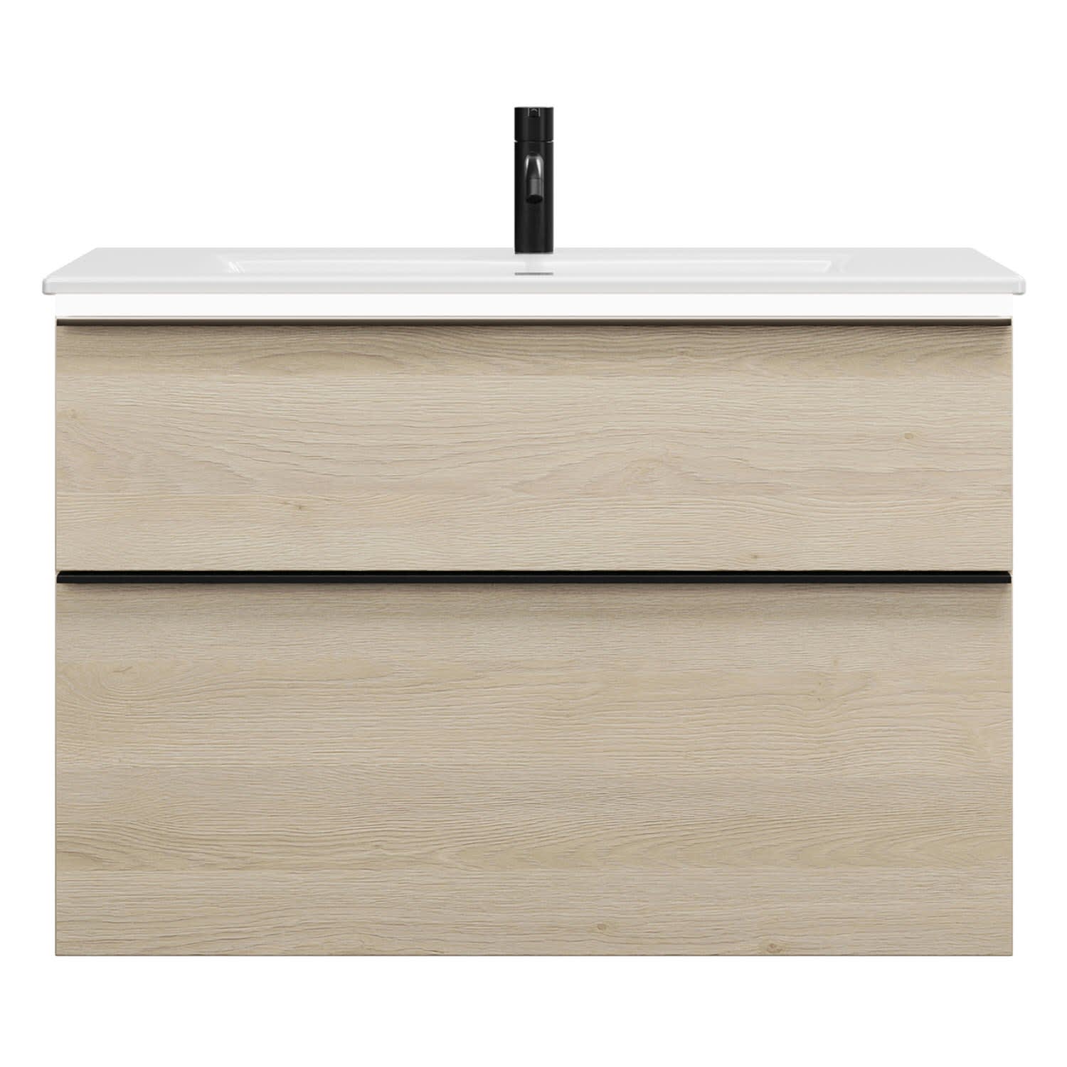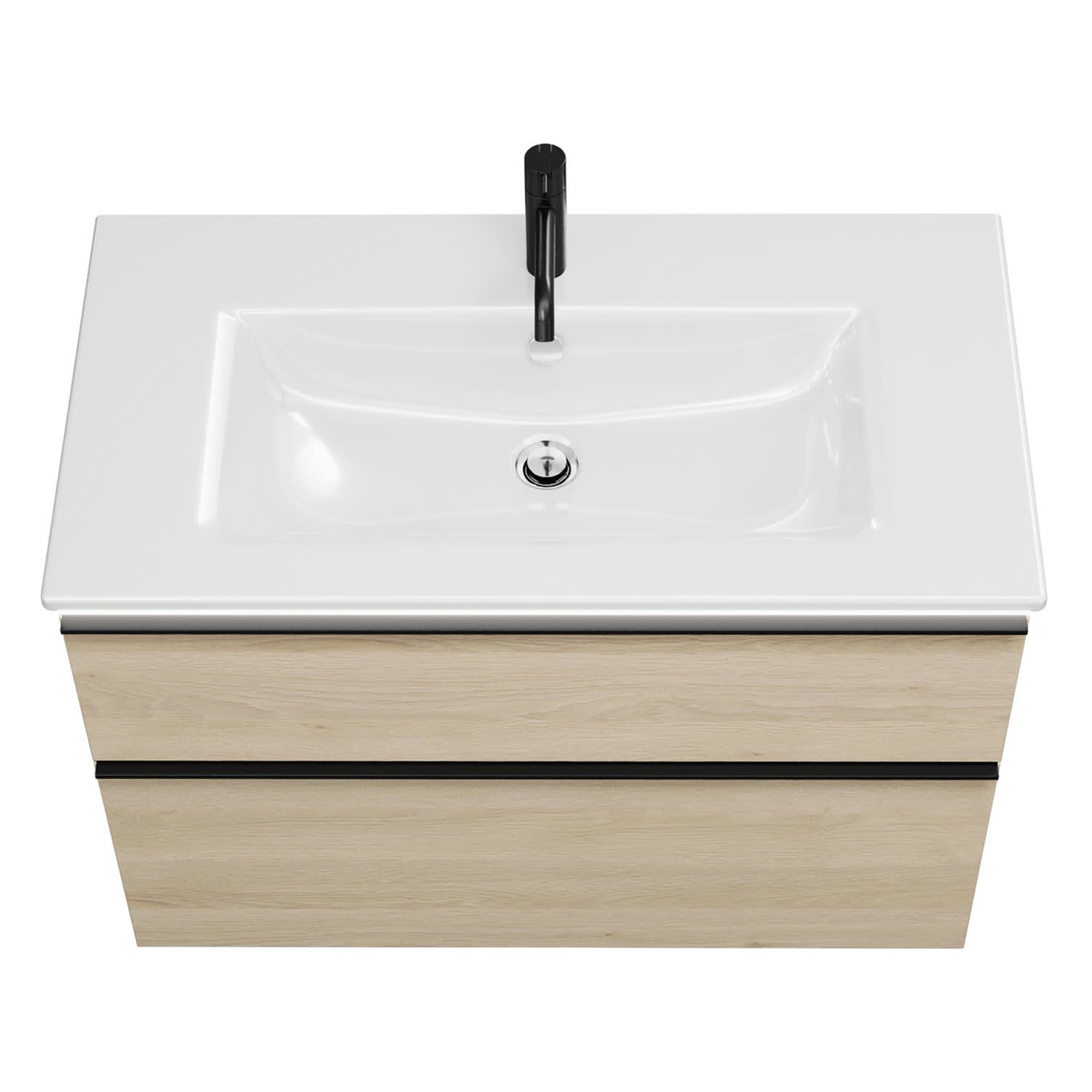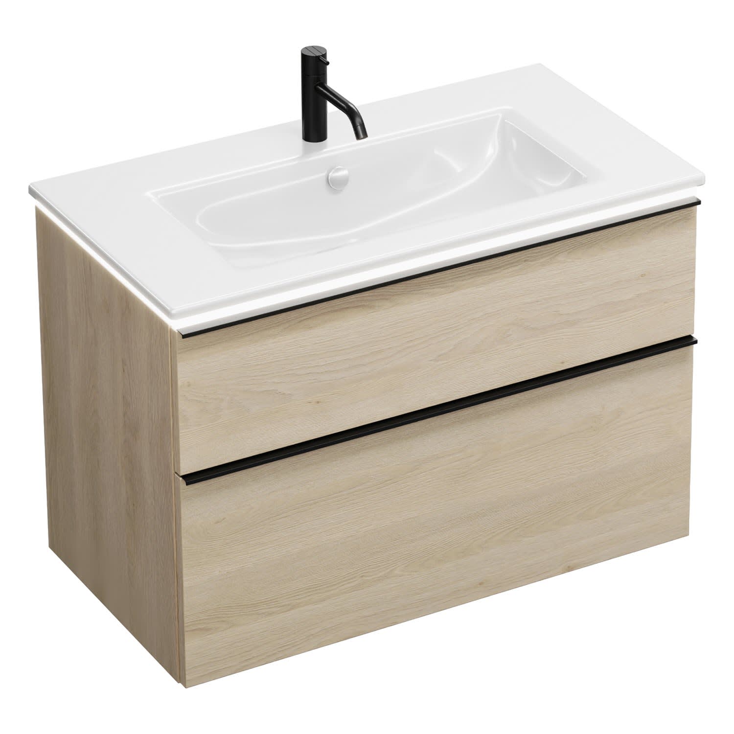 burgbad Eqio Waschtischkombination mit Keramik-Waschtisch Slim und LED-Beleuchtung, 92 cm, mit Griffleiste G0252