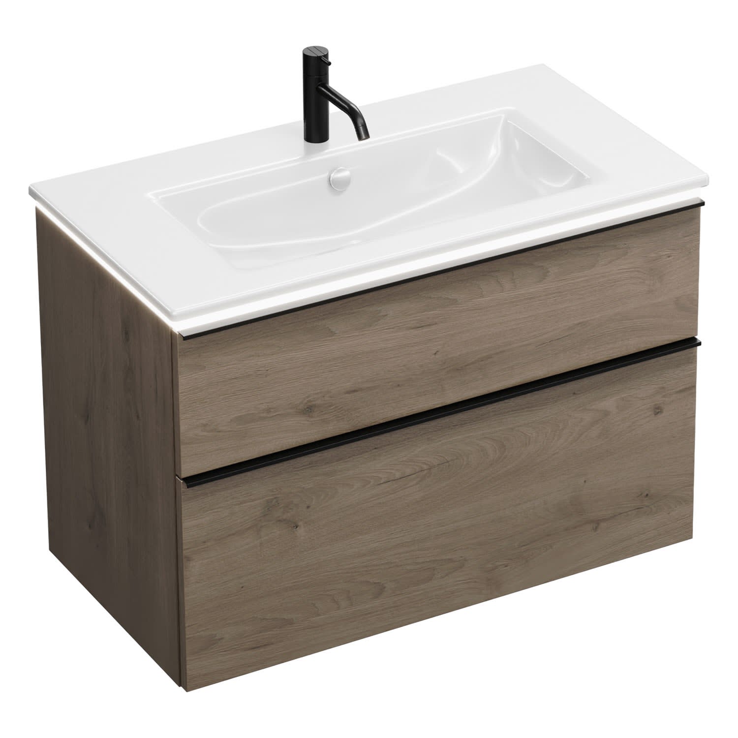 burgbad Eqio Waschtischkombination mit Keramik-Waschtisch Slim und LED-Beleuchtung, 92 cm, mit Griffleiste G0252