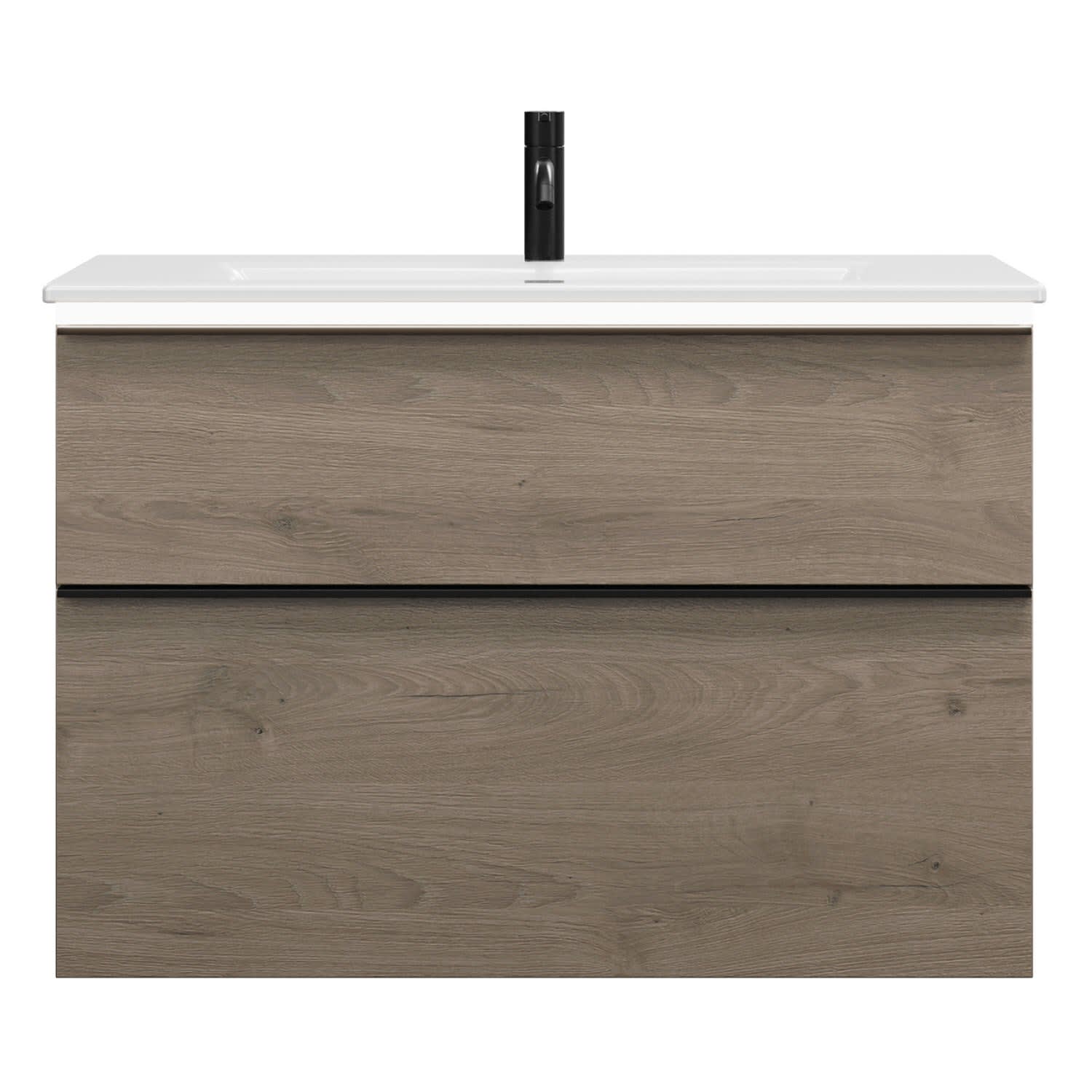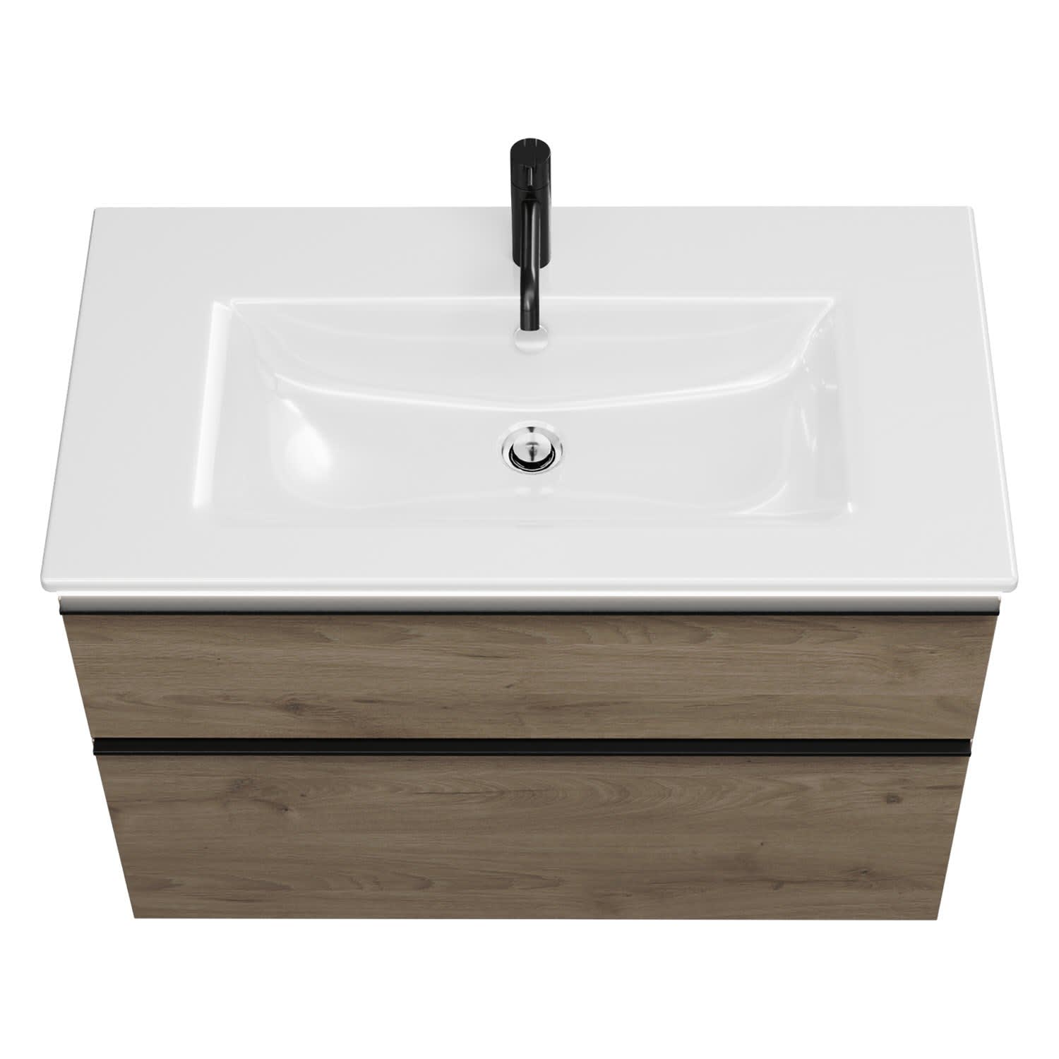 - 1 Schublade oben, 35 cm tief, mit Siphonausschnitt und Inneneinteilung