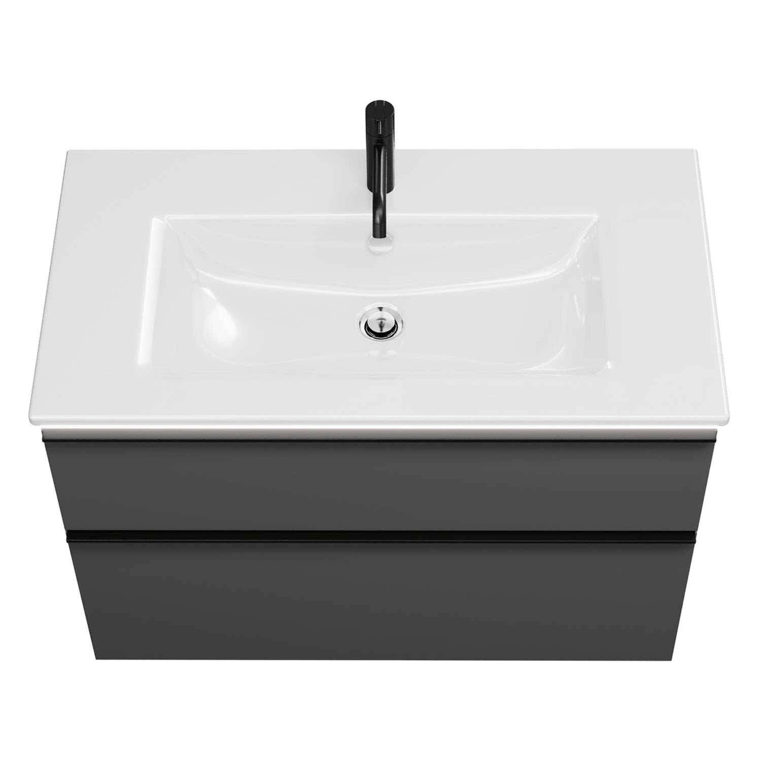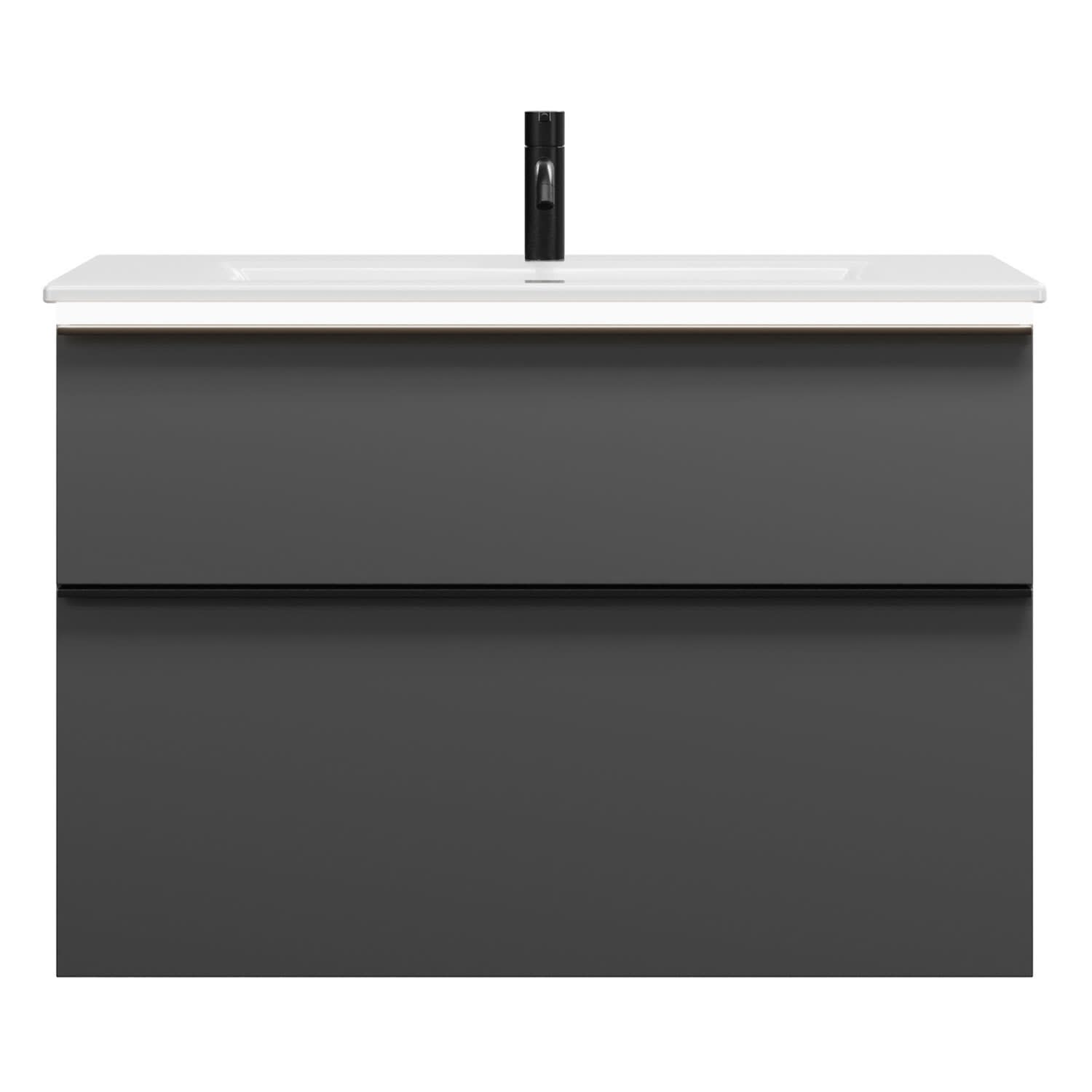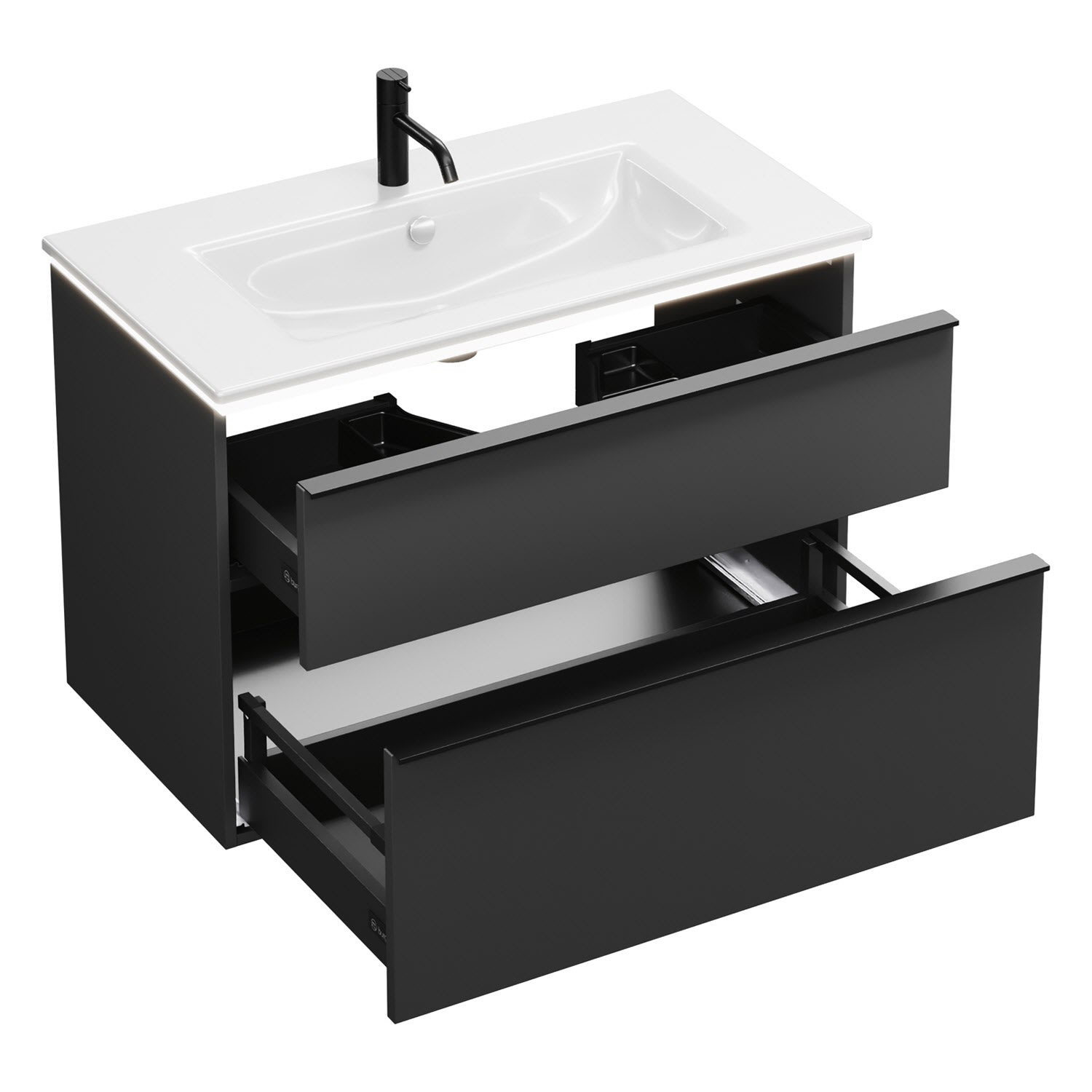 burgbad Eqio Waschtischkombination mit Keramik-Waschtisch Slim und LED-Beleuchtung, 92 cm, mit Griffleiste G0252