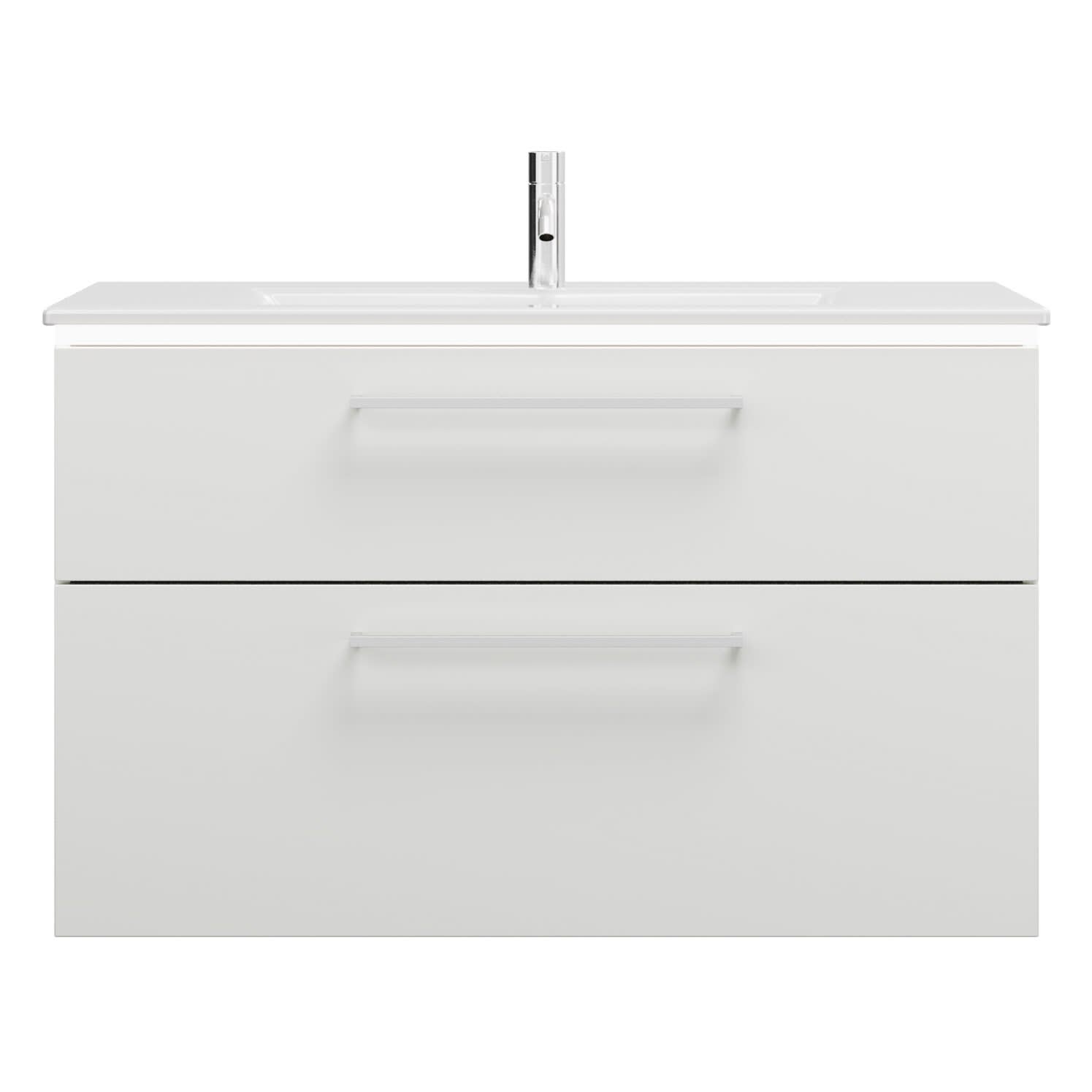 burgbad Eqio Waschtischkombination mit Keramik-Waschtisch Slim und LED-Beleuchtung, 102 cm, mit Stangengriff P95