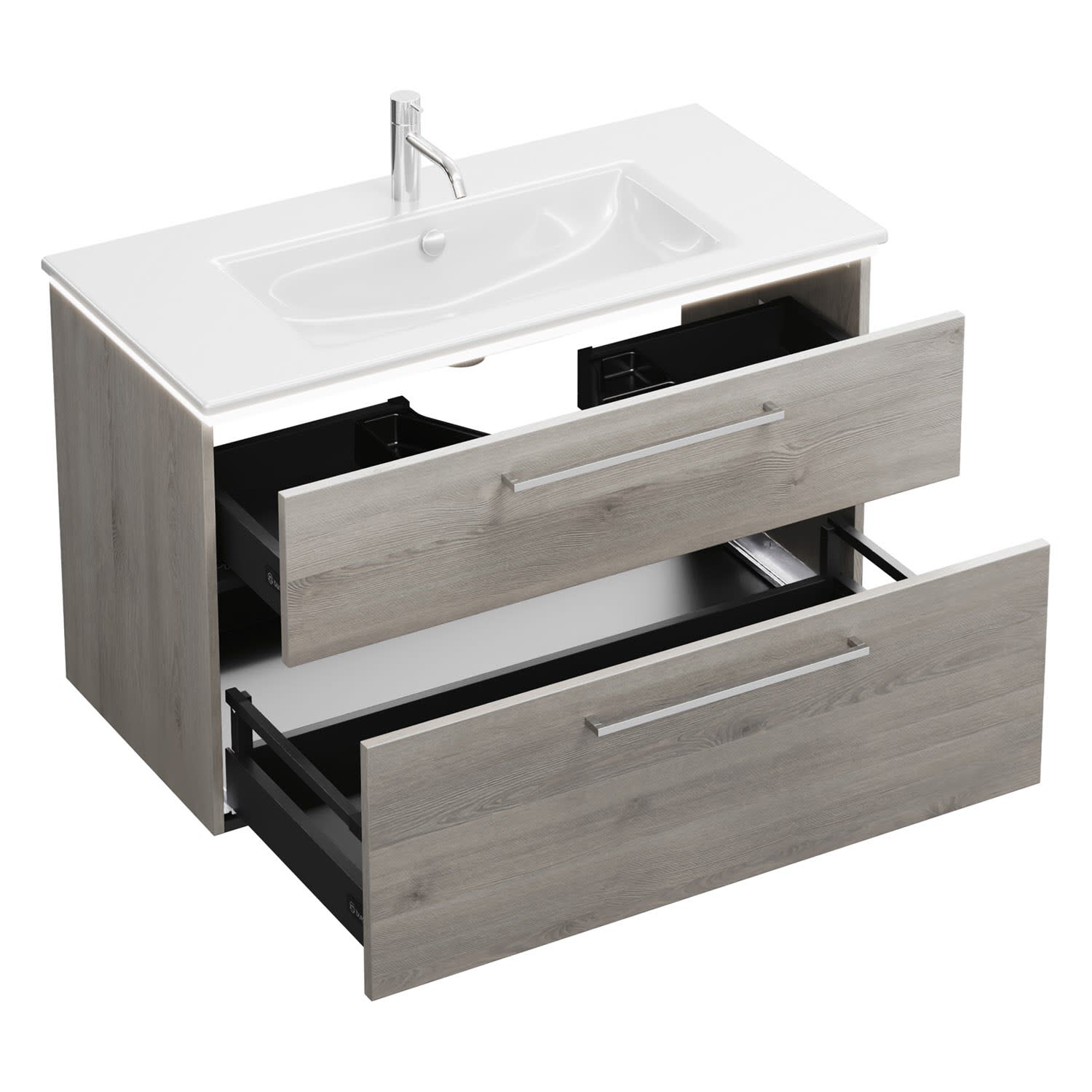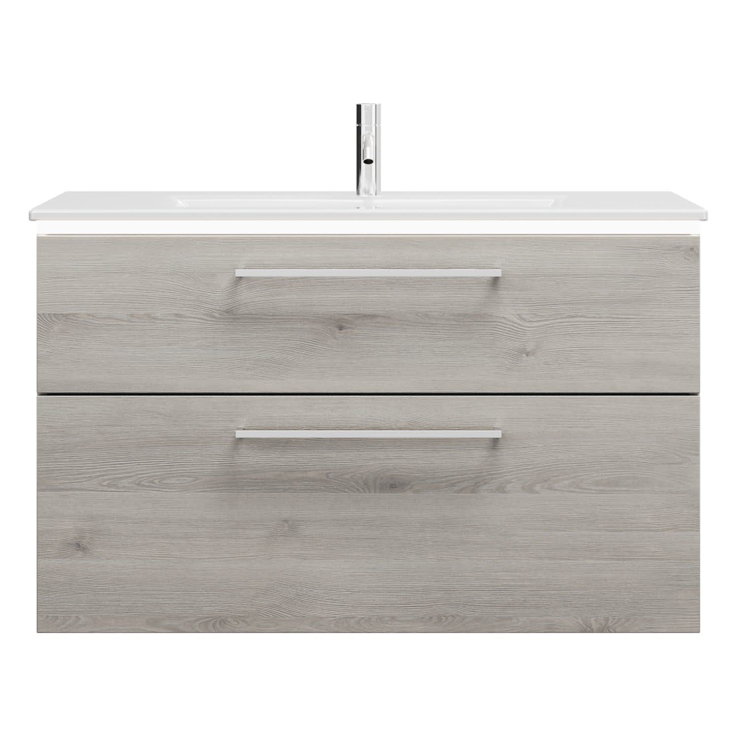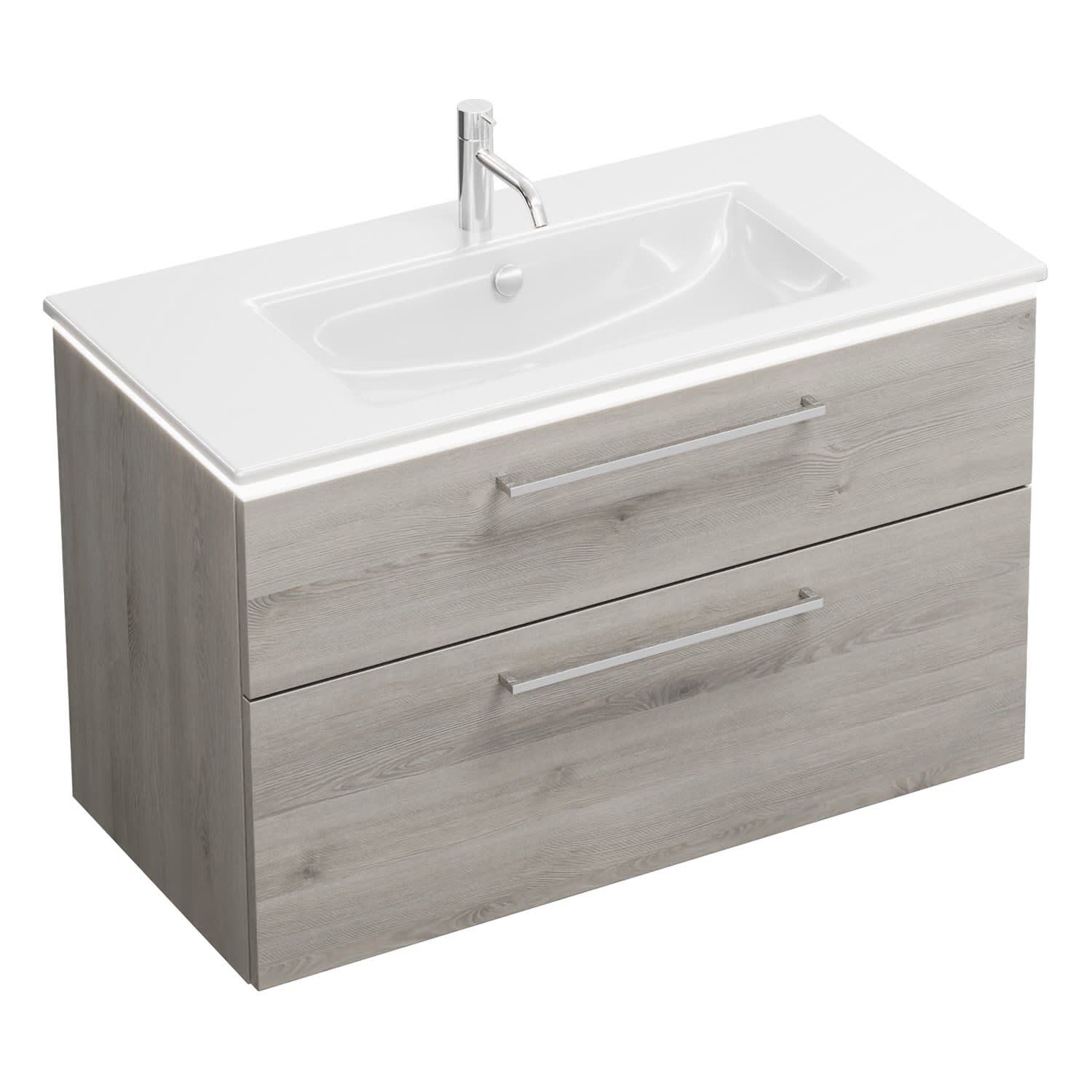 burgbad Eqio Waschtischkombination mit Keramik-Waschtisch Slim und LED-Beleuchtung, 102 cm, mit Stangengriff P95