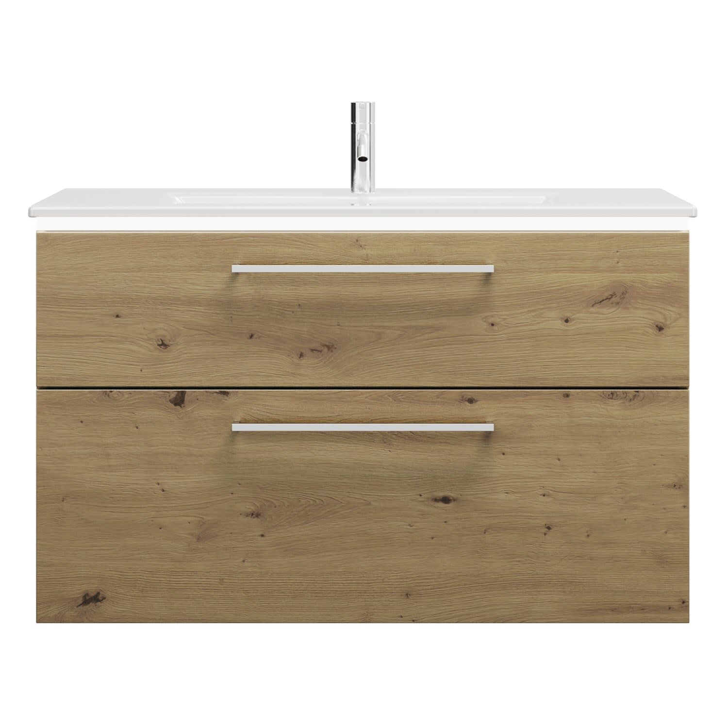 burgbad Eqio Waschtischkombination mit Keramik-Waschtisch Slim und LED-Beleuchtung, 102 cm, mit Stangengriff P95