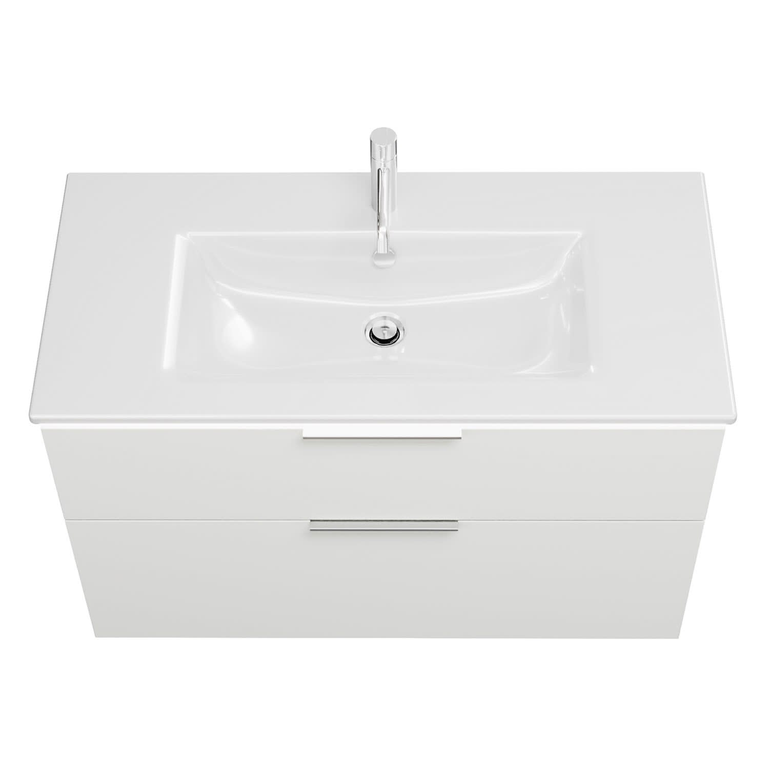 burgbad Eqio Waschtischkombination mit Keramik-Waschtisch Slim und LED-Beleuchtung, 102 cm, mit Griff G0146