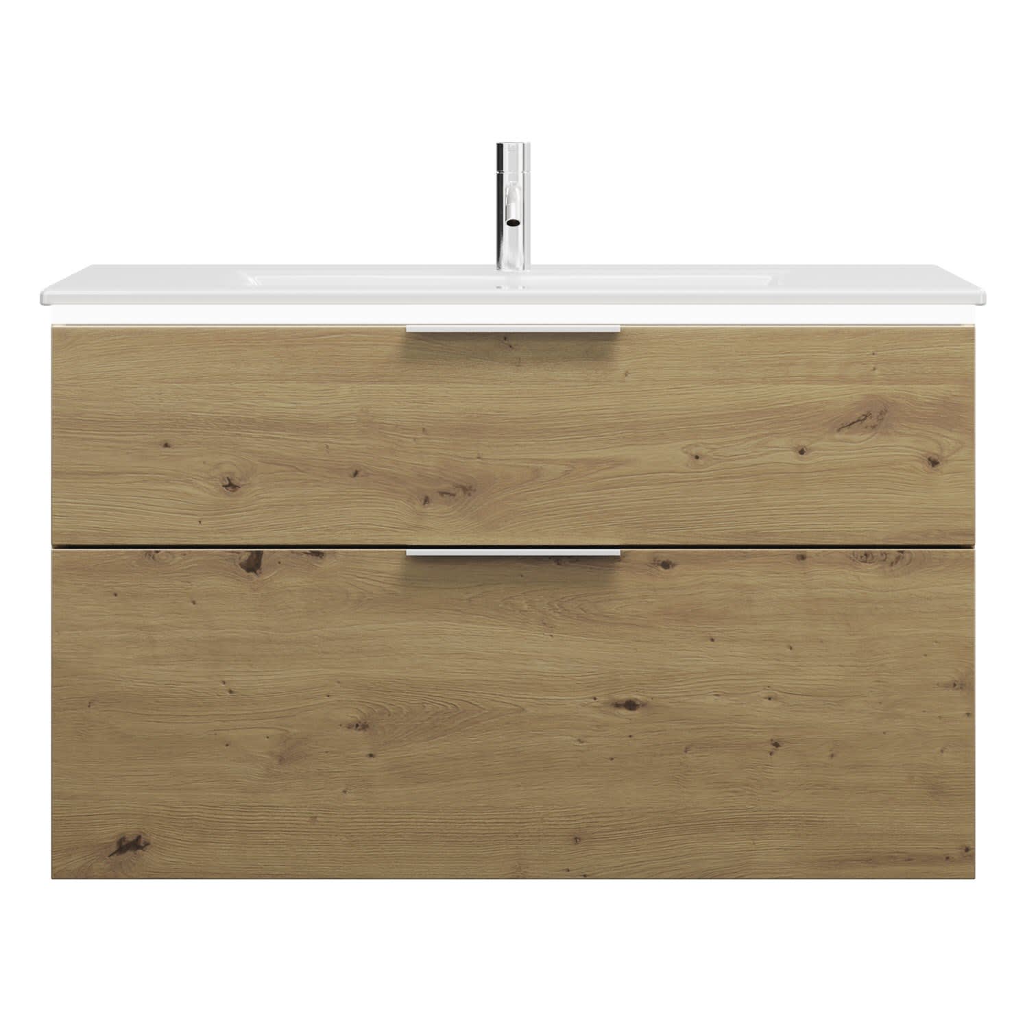 burgbad Eqio Waschtischkombination mit Keramik-Waschtisch Slim und LED-Beleuchtung, 102 cm, mit Griff G0146