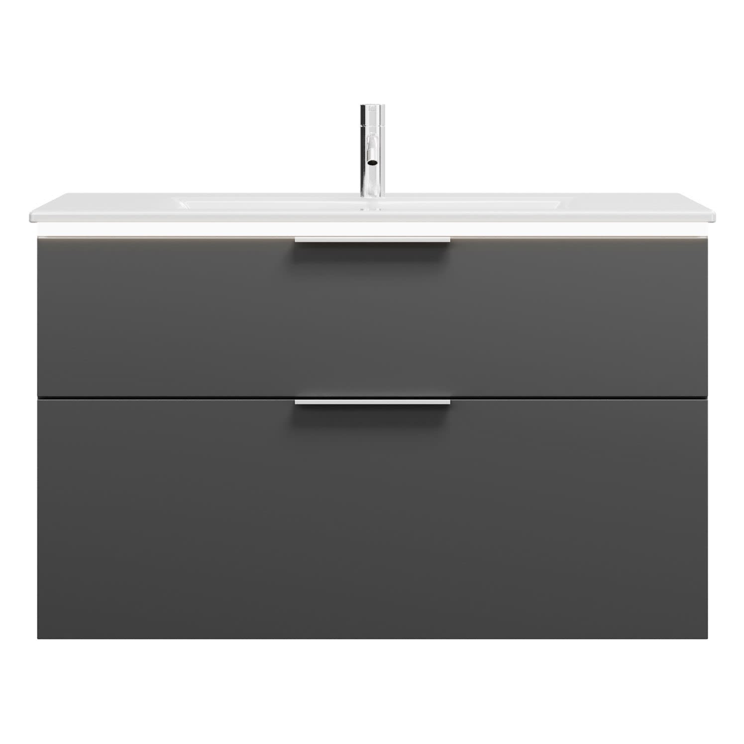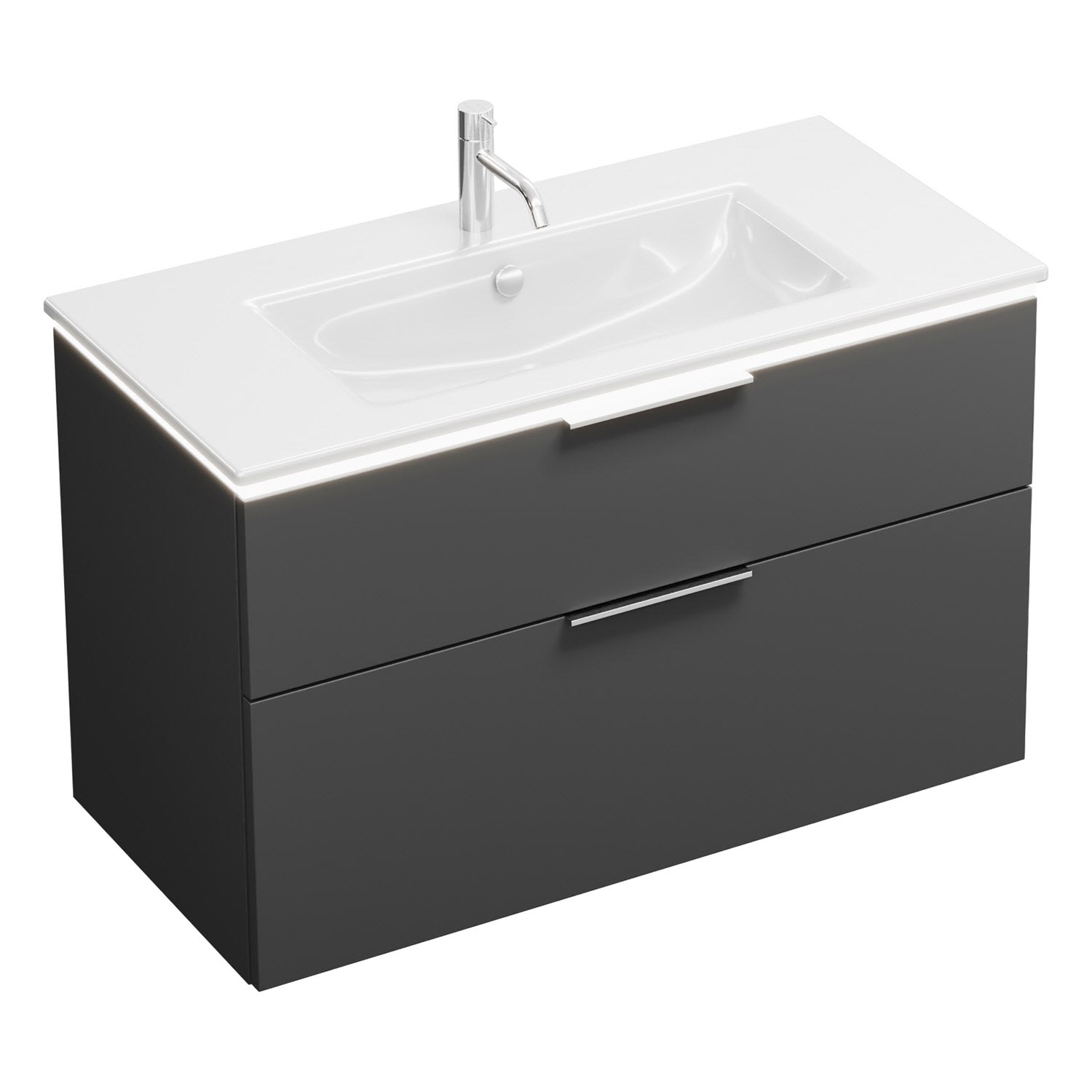 burgbad Eqio Waschtischkombination mit Keramik-Waschtisch Slim und LED-Beleuchtung, 102 cm, mit Griff G0146