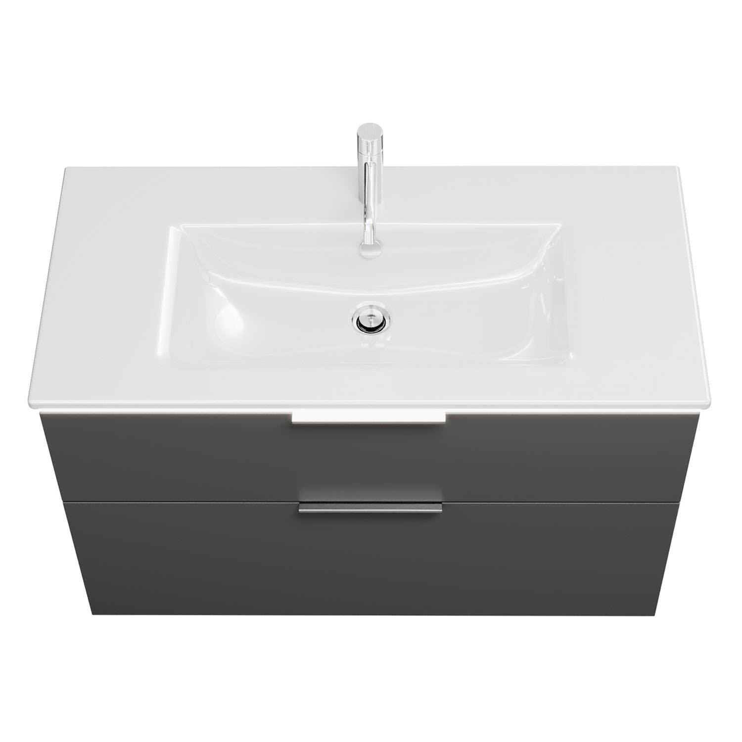 - 1 Schublade oben, 35 cm tief, mit Siphonausschnitt und Inneneinteilung