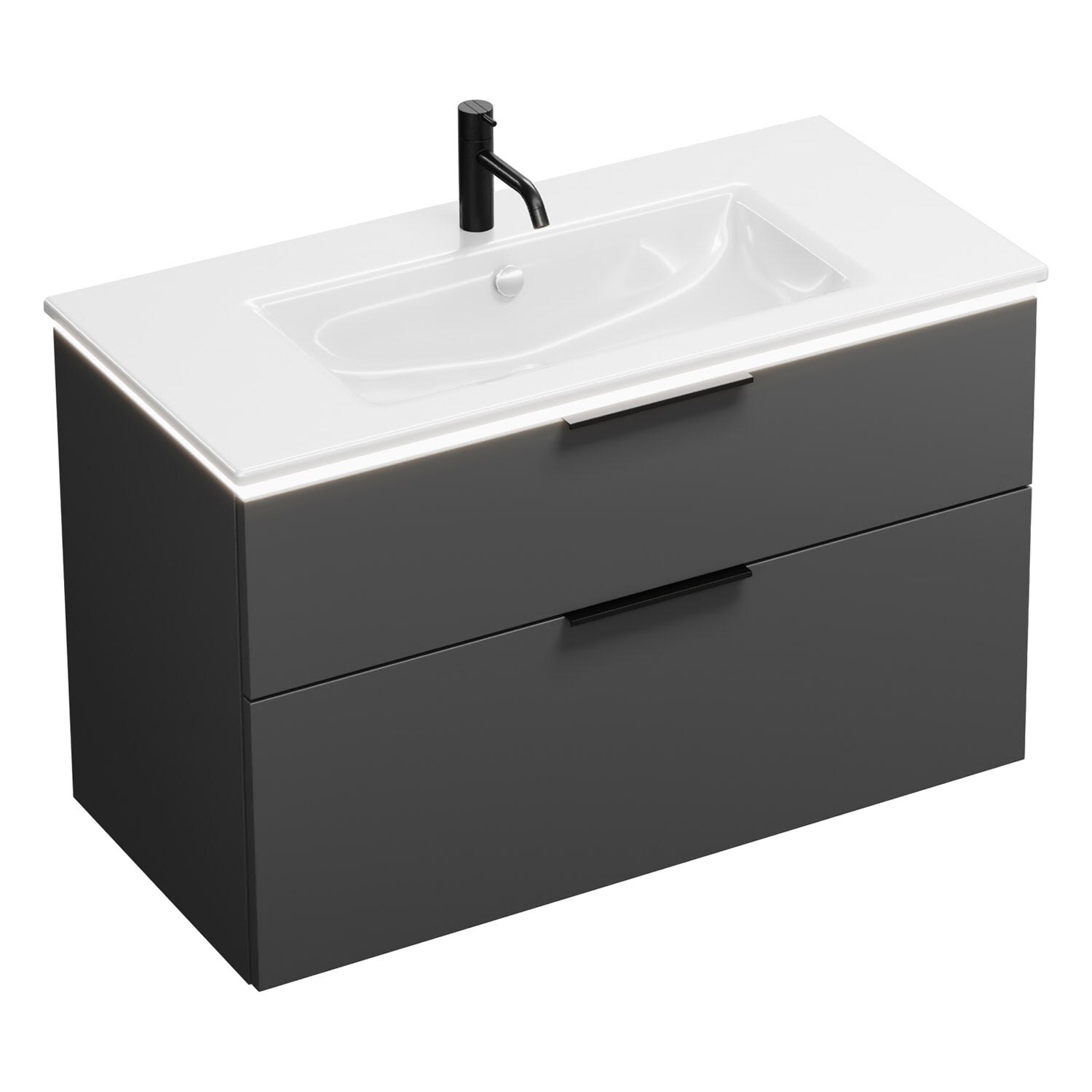 burgbad Eqio Waschtischkombination mit Keramik-Waschtisch Slim und LED-Beleuchtung, 102 cm, mit Griff G0200