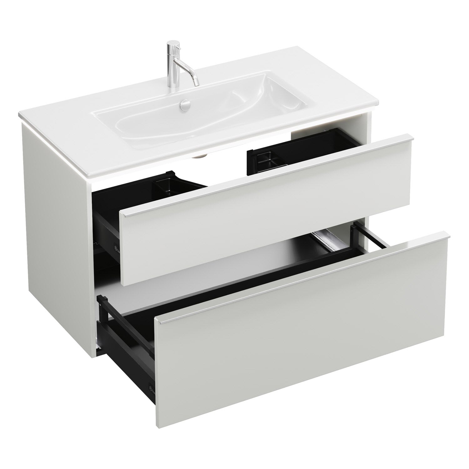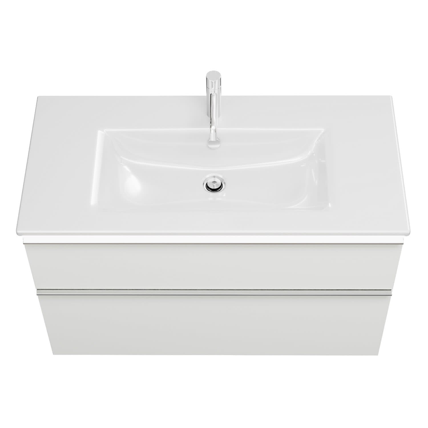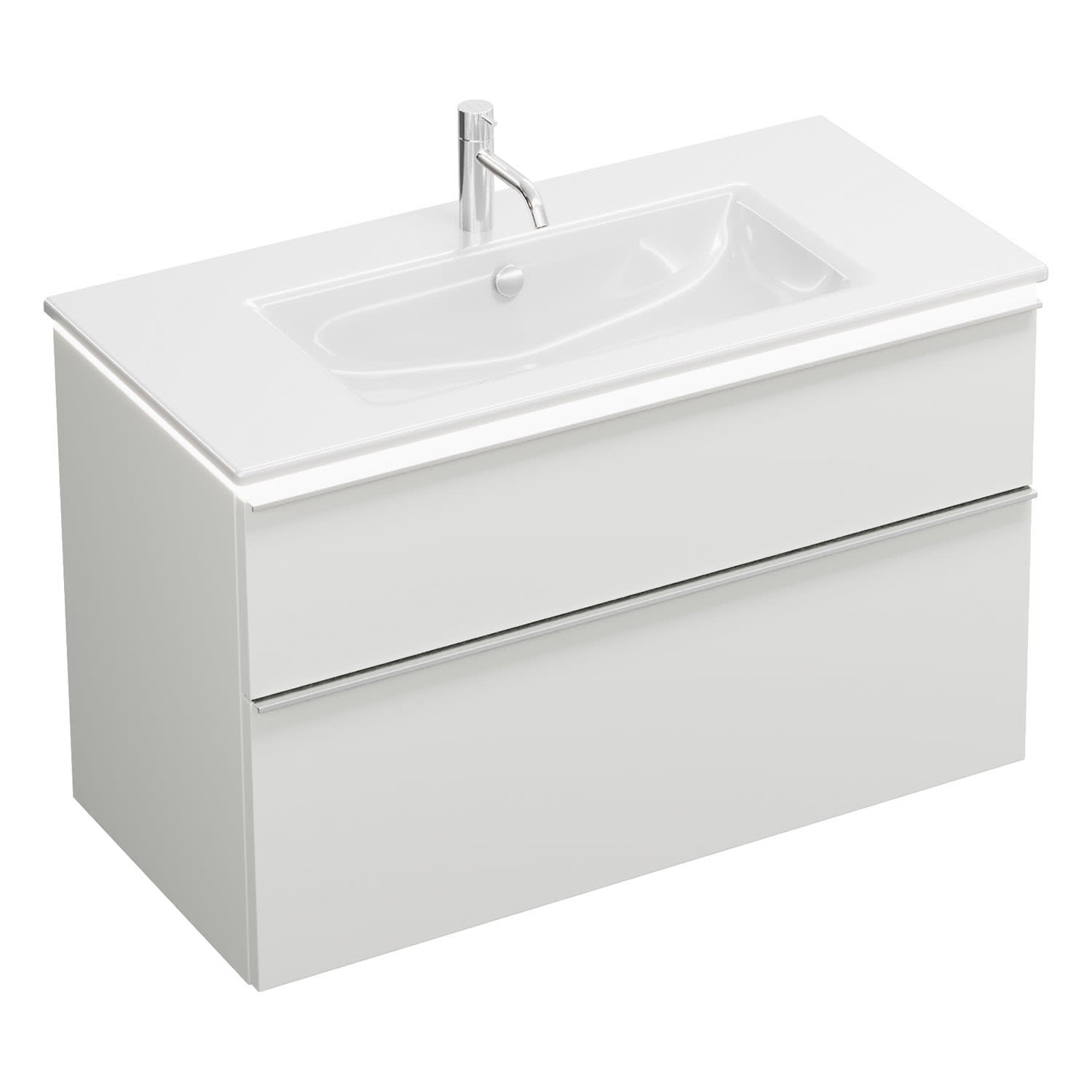 burgbad Eqio Waschtischkombination mit Keramik-Waschtisch Slim und LED-Beleuchtung, 102 cm, mit Griffleiste G0251