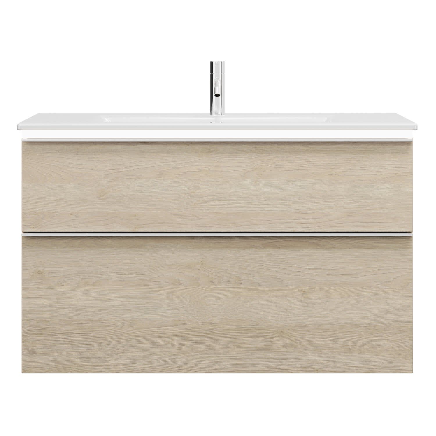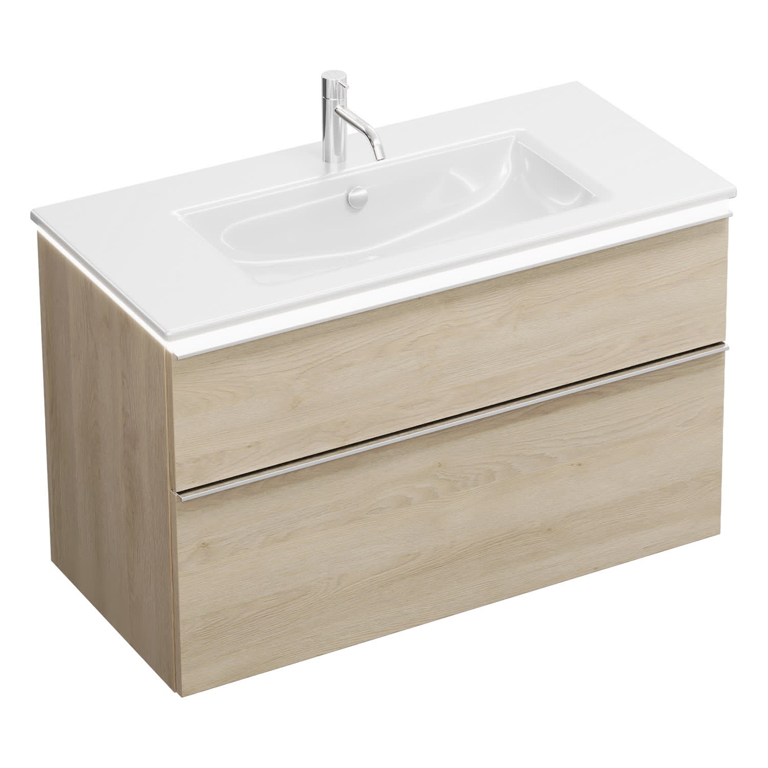 burgbad Eqio Waschtischkombination mit Keramik-Waschtisch Slim und LED-Beleuchtung, 102 cm, mit Griffleiste G0251