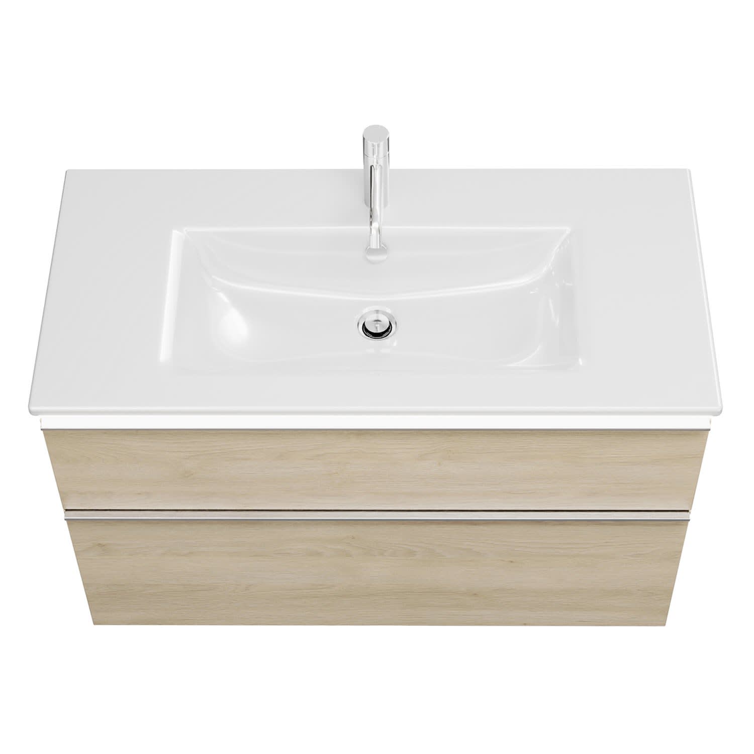 - 1 Schublade oben, 35 cm tief, mit Siphonausschnitt und Inneneinteilung