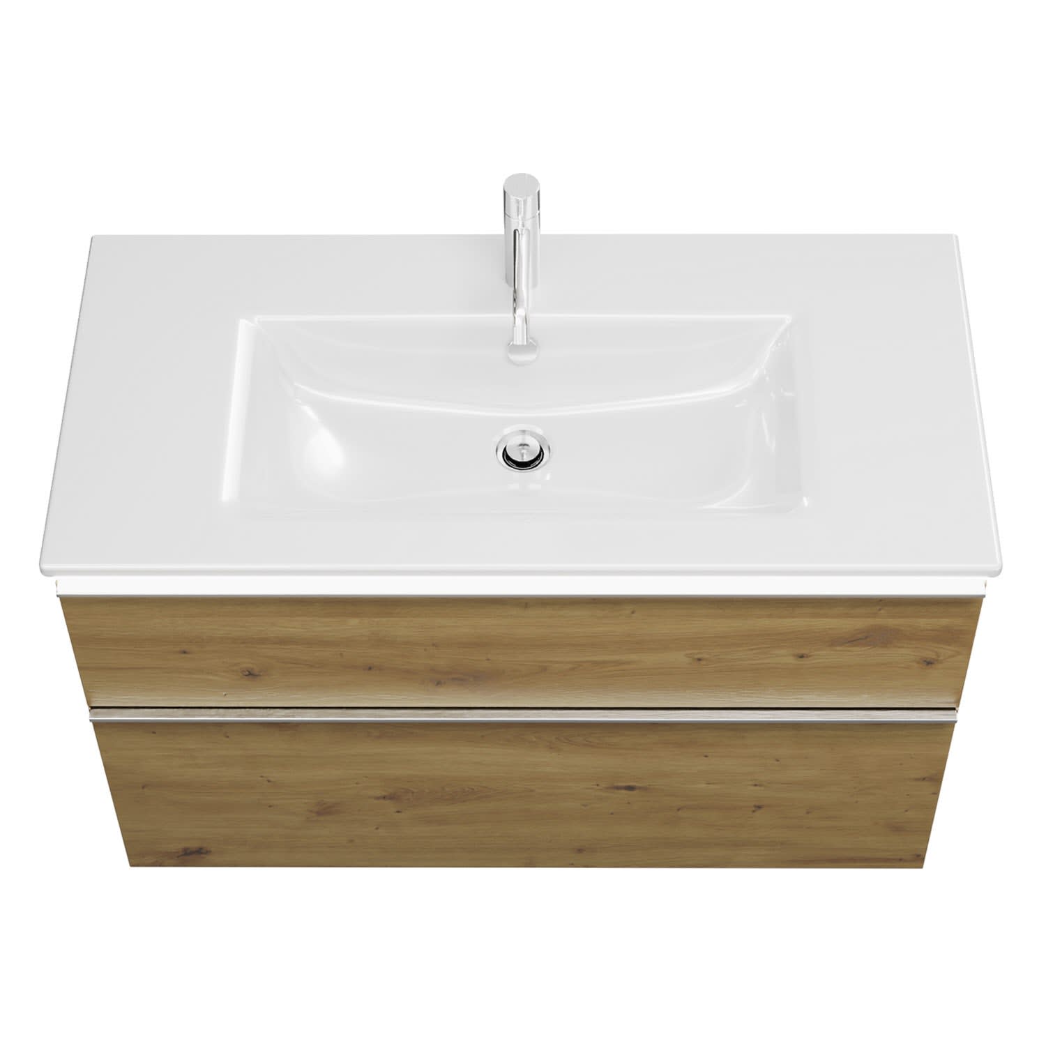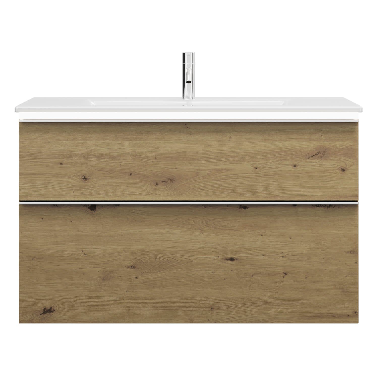 burgbad Eqio Waschtischkombination mit Keramik-Waschtisch Slim und LED-Beleuchtung, 102 cm, mit Griffleiste G0251