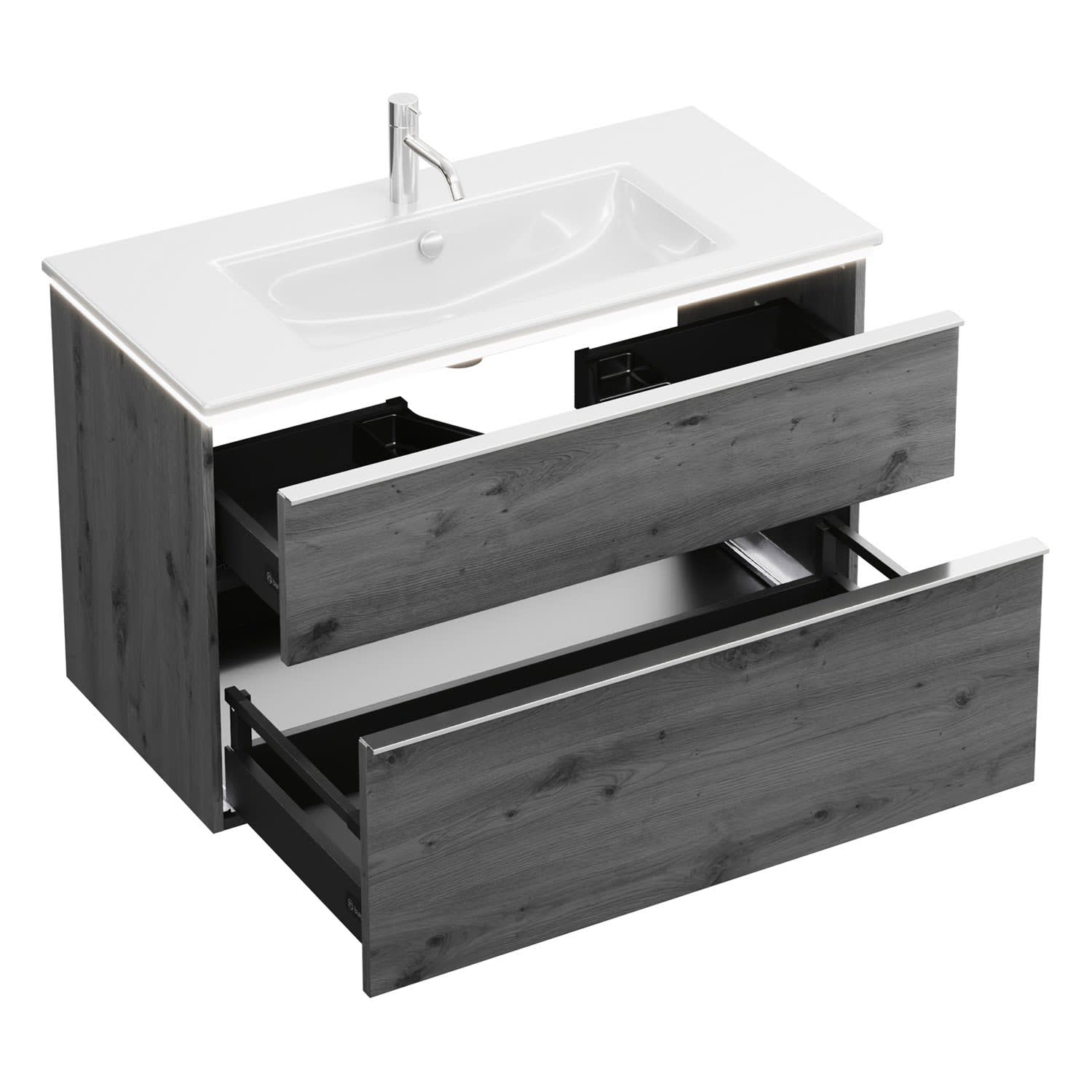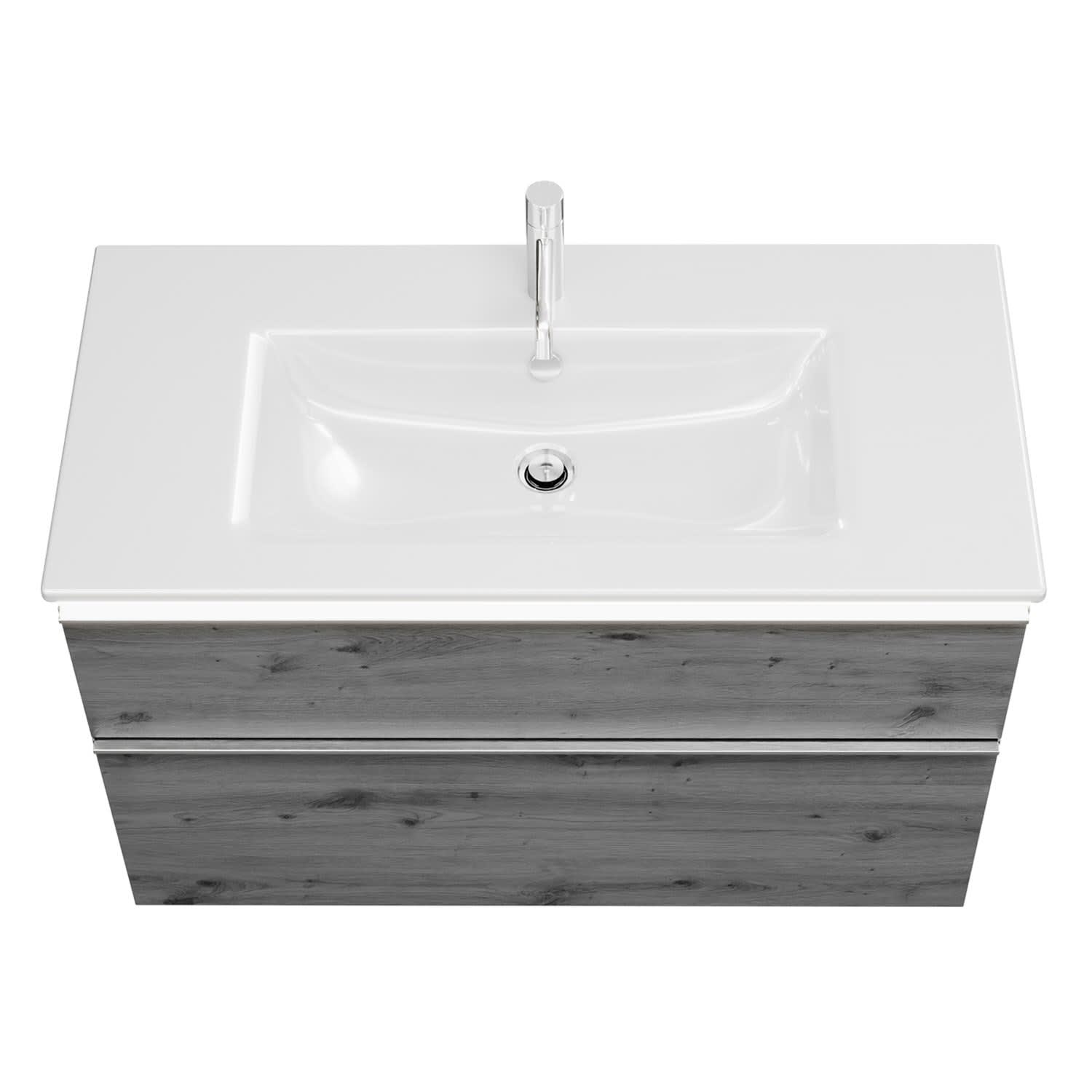 burgbad Eqio Waschtischkombination mit Keramik-Waschtisch Slim und LED-Beleuchtung, 102 cm, mit Griffleiste G0251