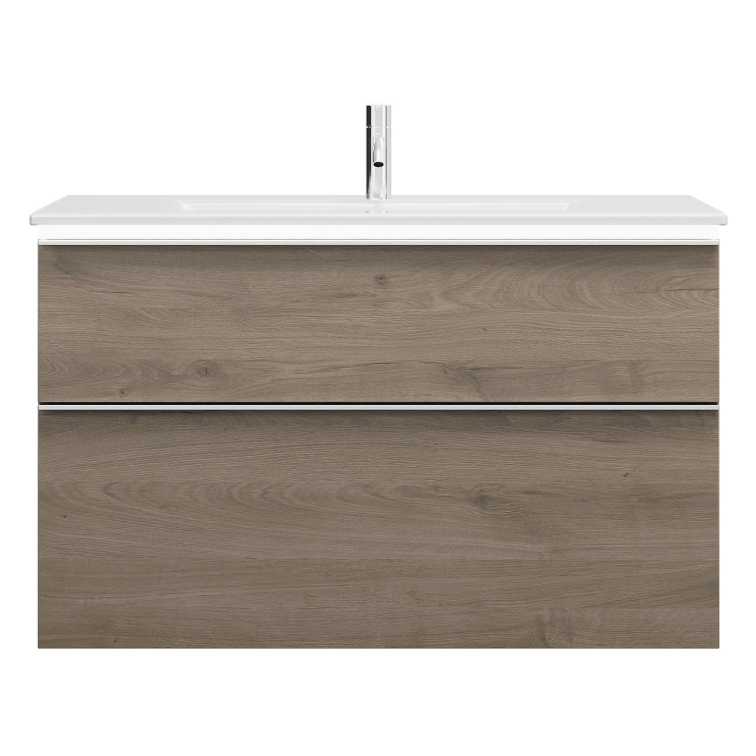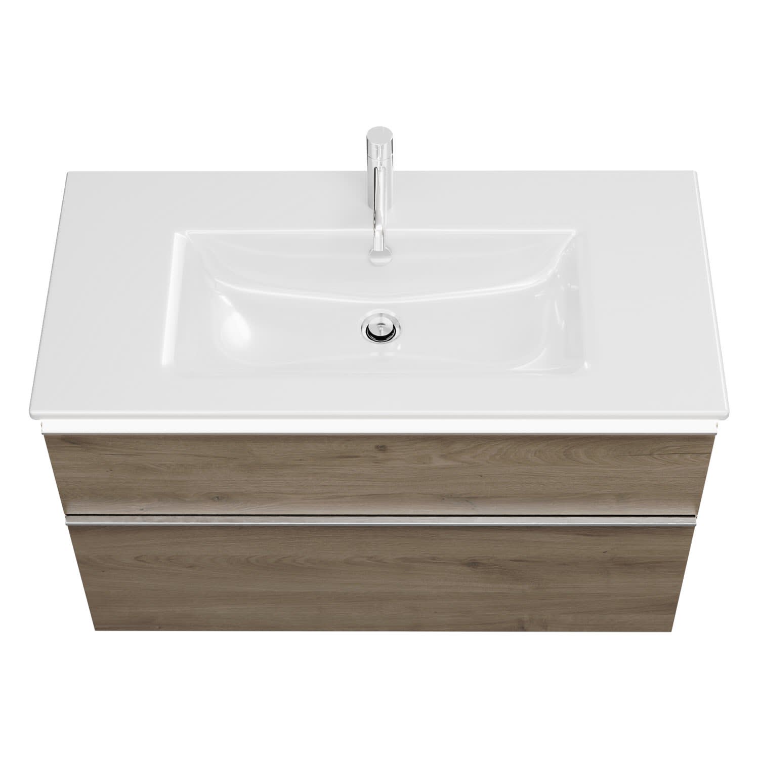 burgbad Eqio Waschtischkombination mit Keramik-Waschtisch Slim und LED-Beleuchtung, 102 cm, mit Griffleiste G0251