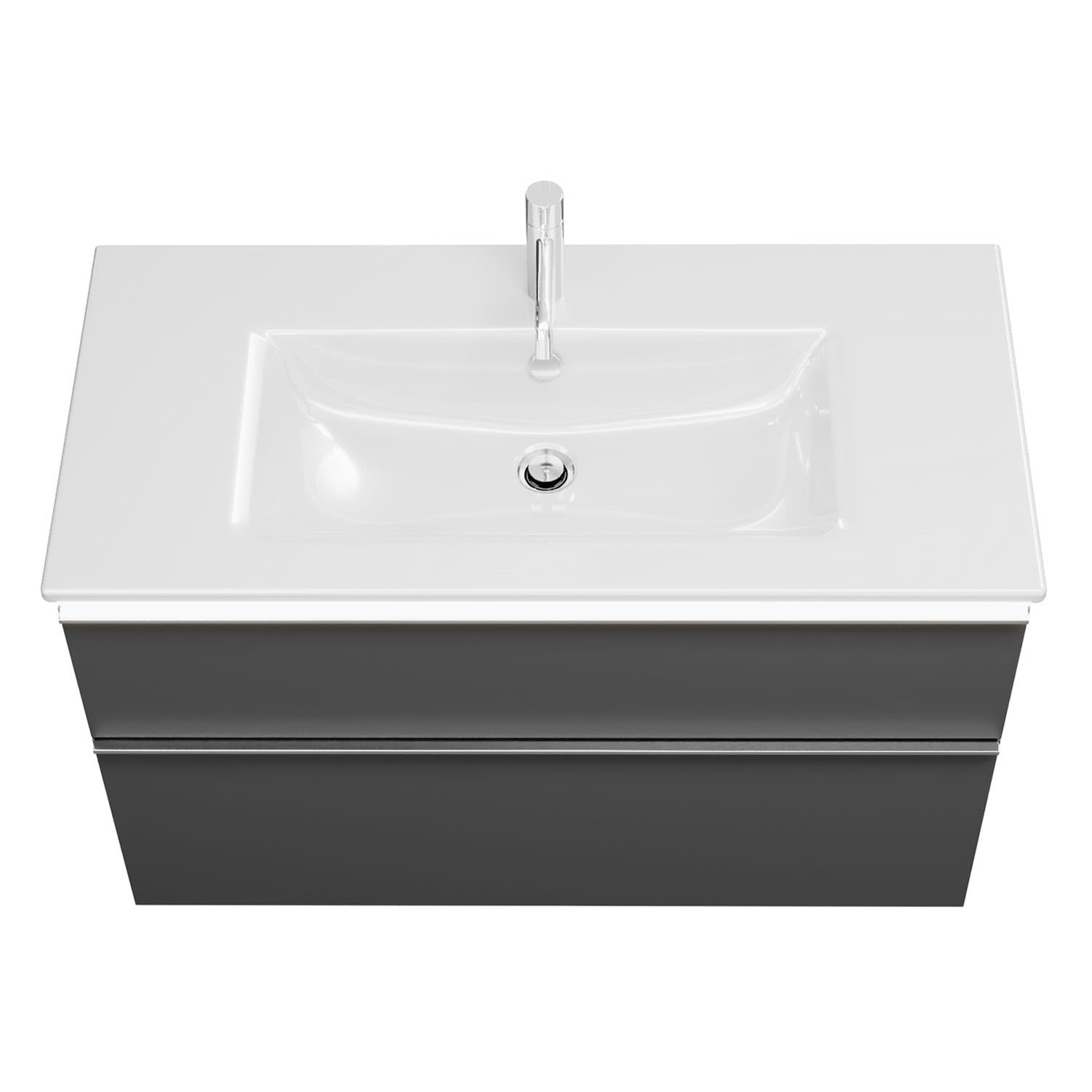 burgbad Eqio Waschtischkombination mit Keramik-Waschtisch Slim und LED-Beleuchtung, 102 cm, mit Griffleiste G0251
