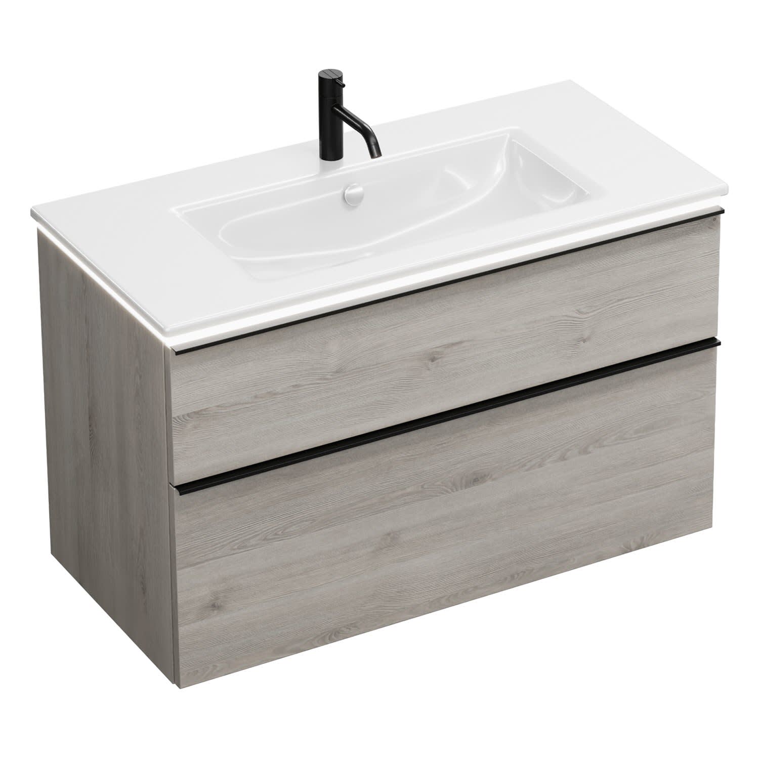 burgbad Eqio Waschtischkombination mit Keramik-Waschtisch Slim und LED-Beleuchtung, 102 cm, mit Griffleiste G0252