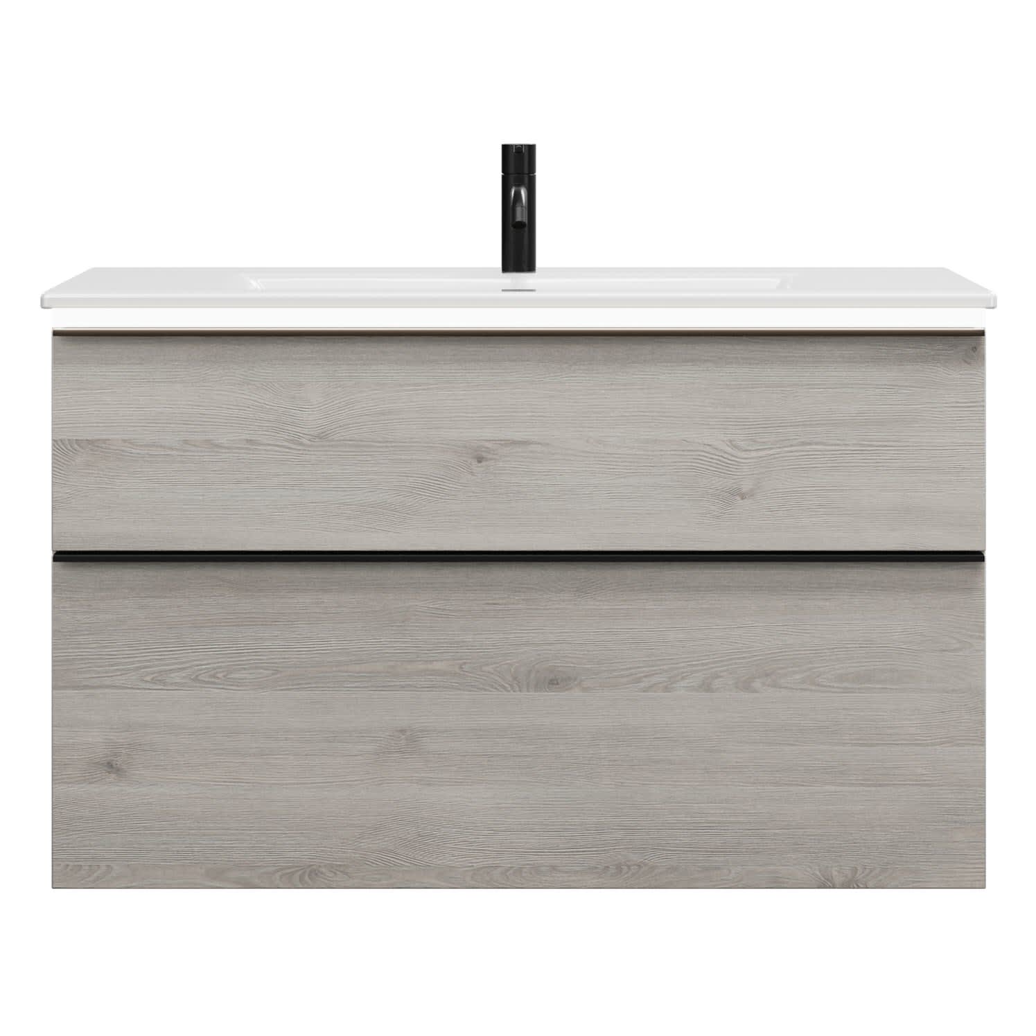 - 1 Schublade oben, 35 cm tief, mit Siphonausschnitt und Inneneinteilung
