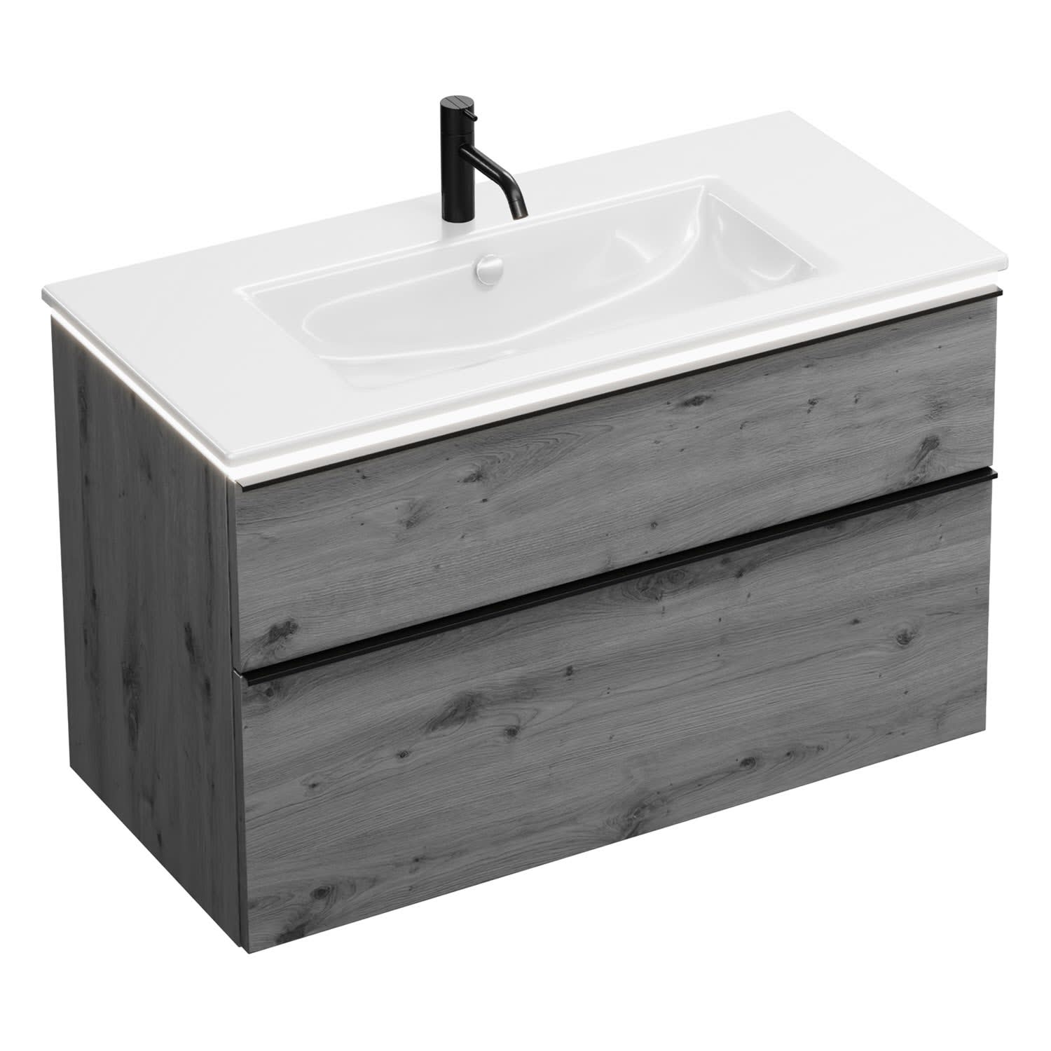 burgbad Eqio Waschtischkombination mit Keramik-Waschtisch Slim und LED-Beleuchtung, 102 cm, mit Griffleiste G0252