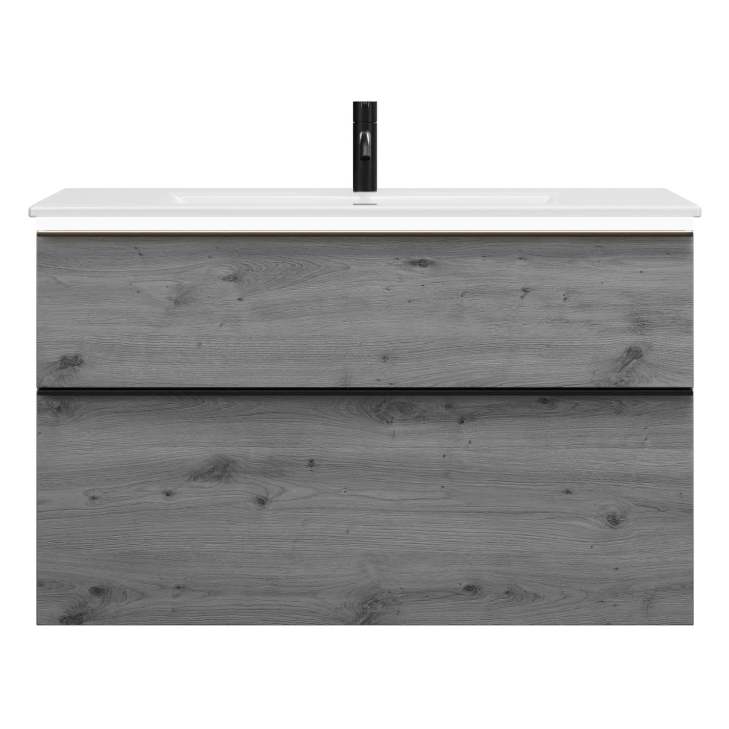 - 1 Schublade oben, 35 cm tief, mit Siphonausschnitt und Inneneinteilung