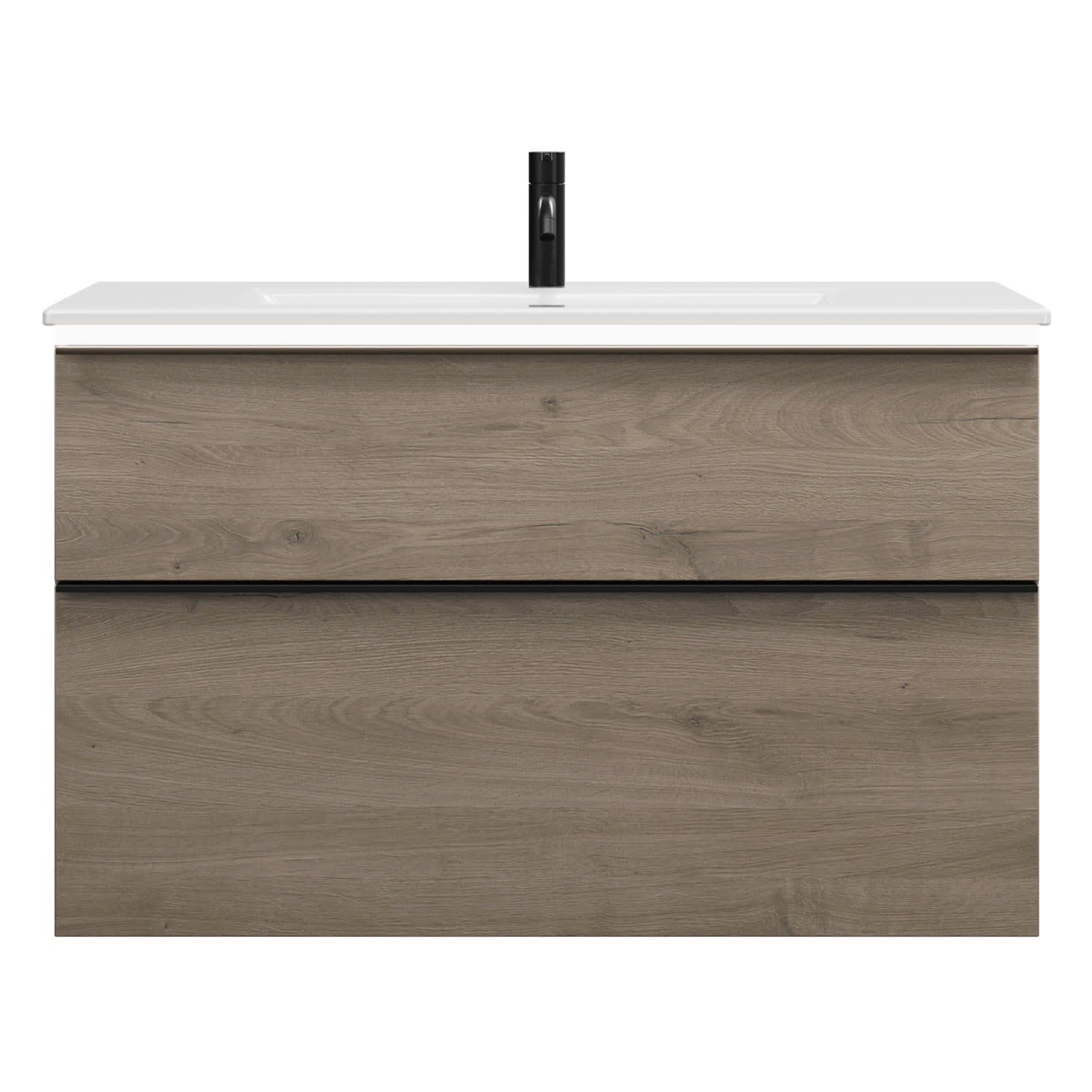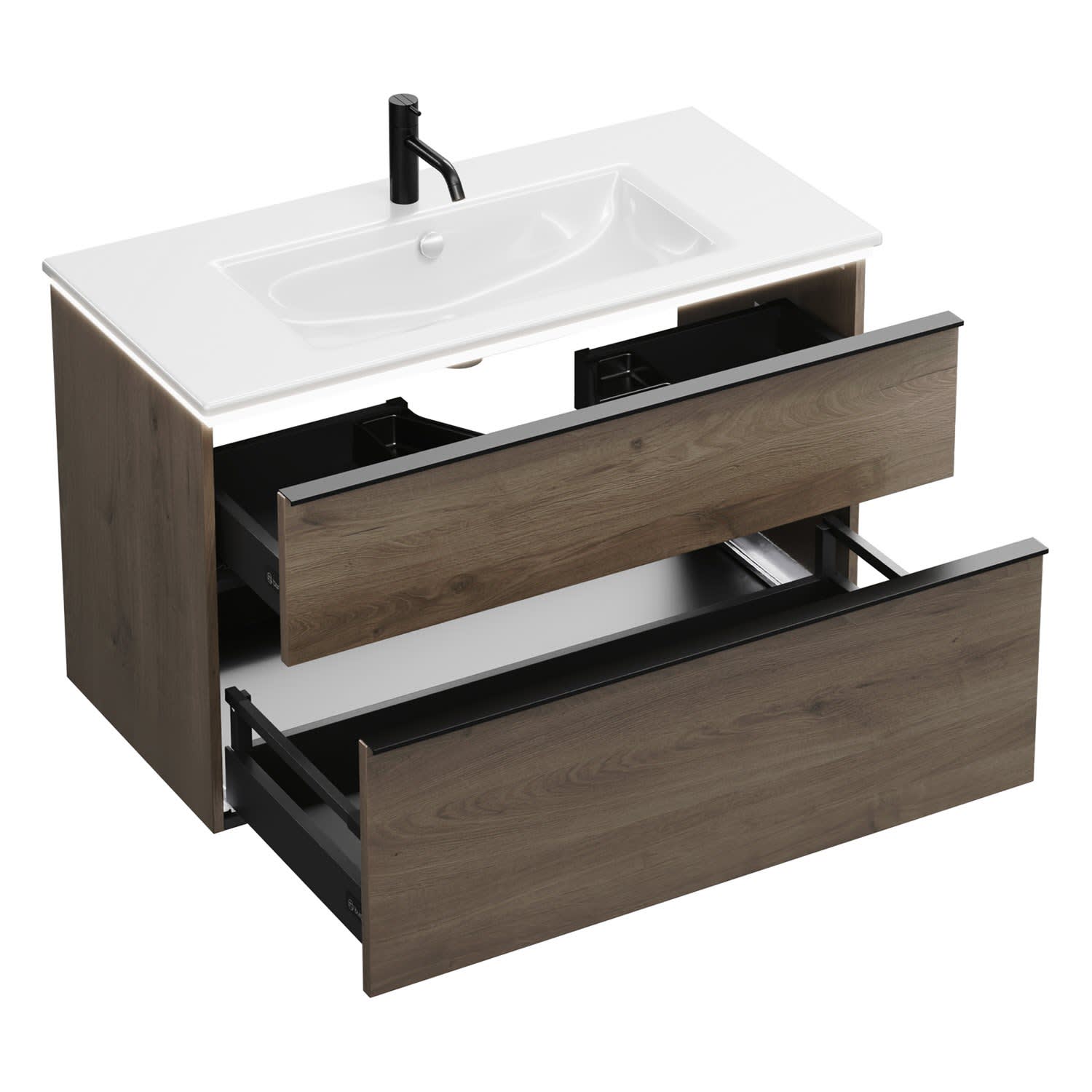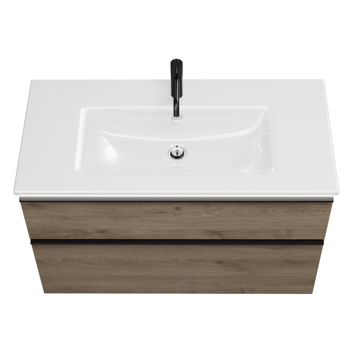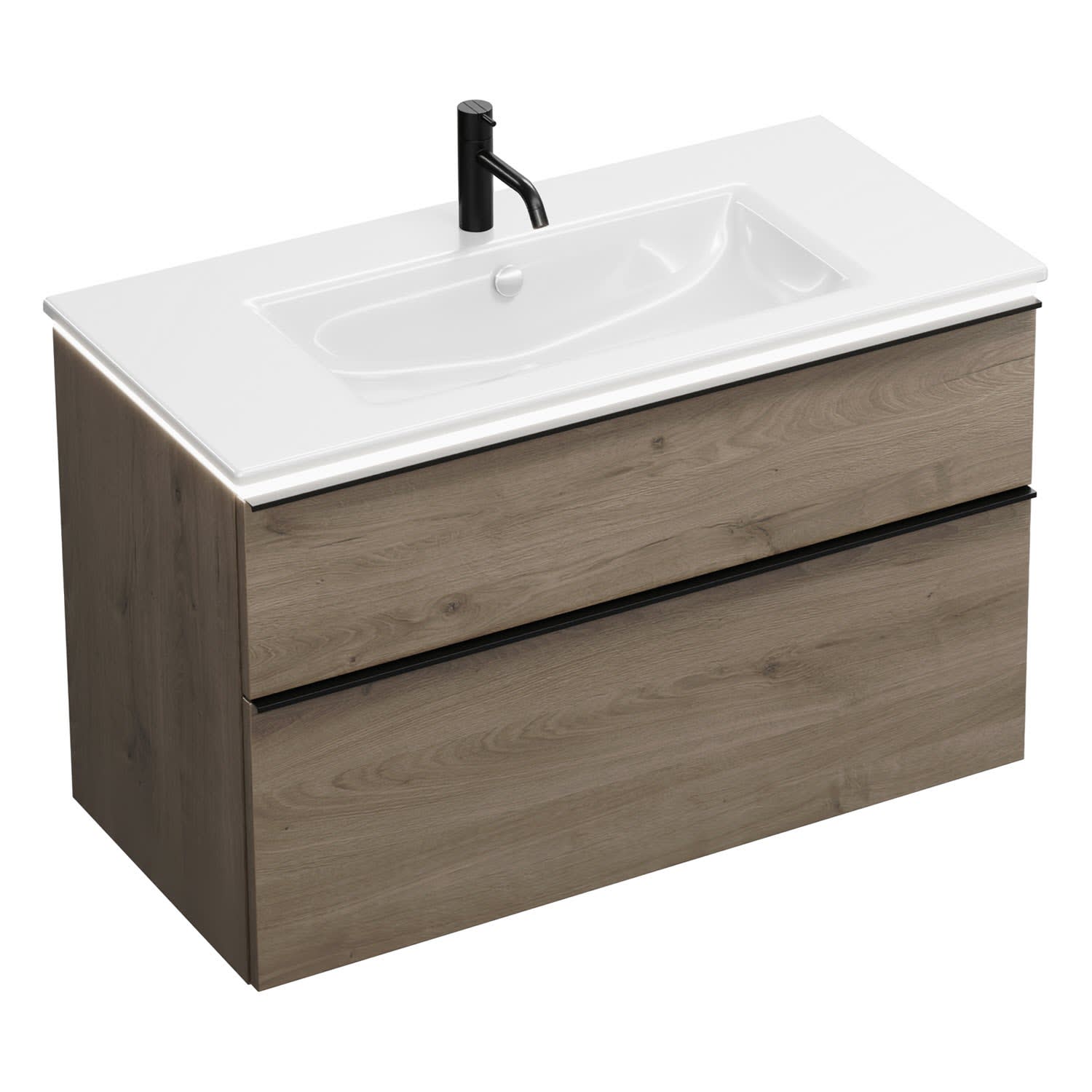burgbad Eqio Waschtischkombination mit Keramik-Waschtisch Slim und LED-Beleuchtung, 102 cm, mit Griffleiste G0252