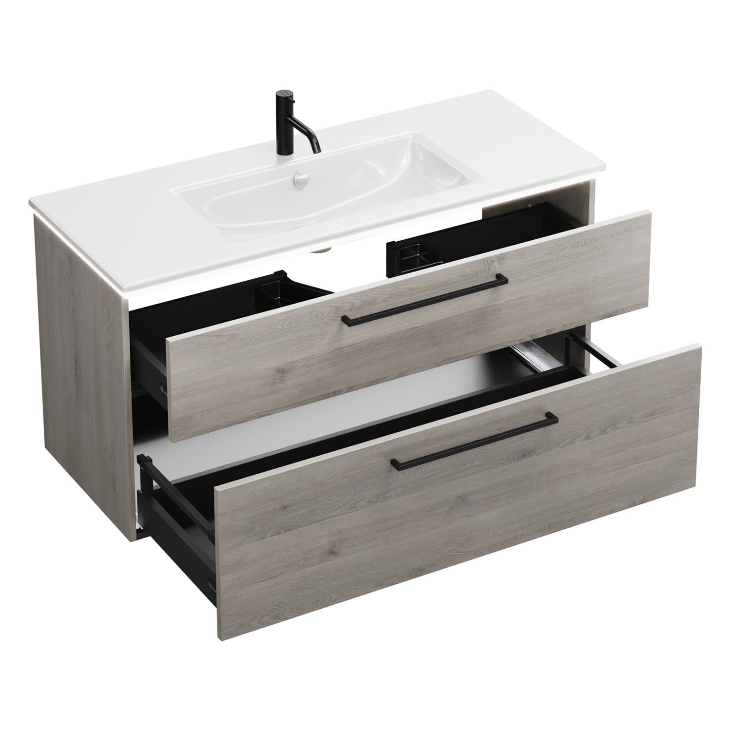 burgbad Eqio Waschtischkombination mit Keramik-Waschtisch Slim und LED-Beleuchtung, 122 cm, mit Stangengriff G0234