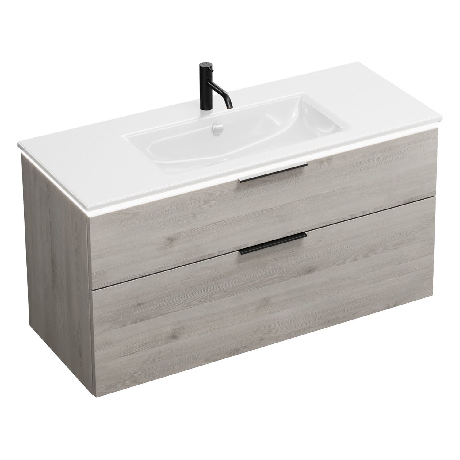 burgbad Eqio Waschtischkombination mit Keramik-Waschtisch Slim und LED-Beleuchtung, 122 cm, mit Griff G0200