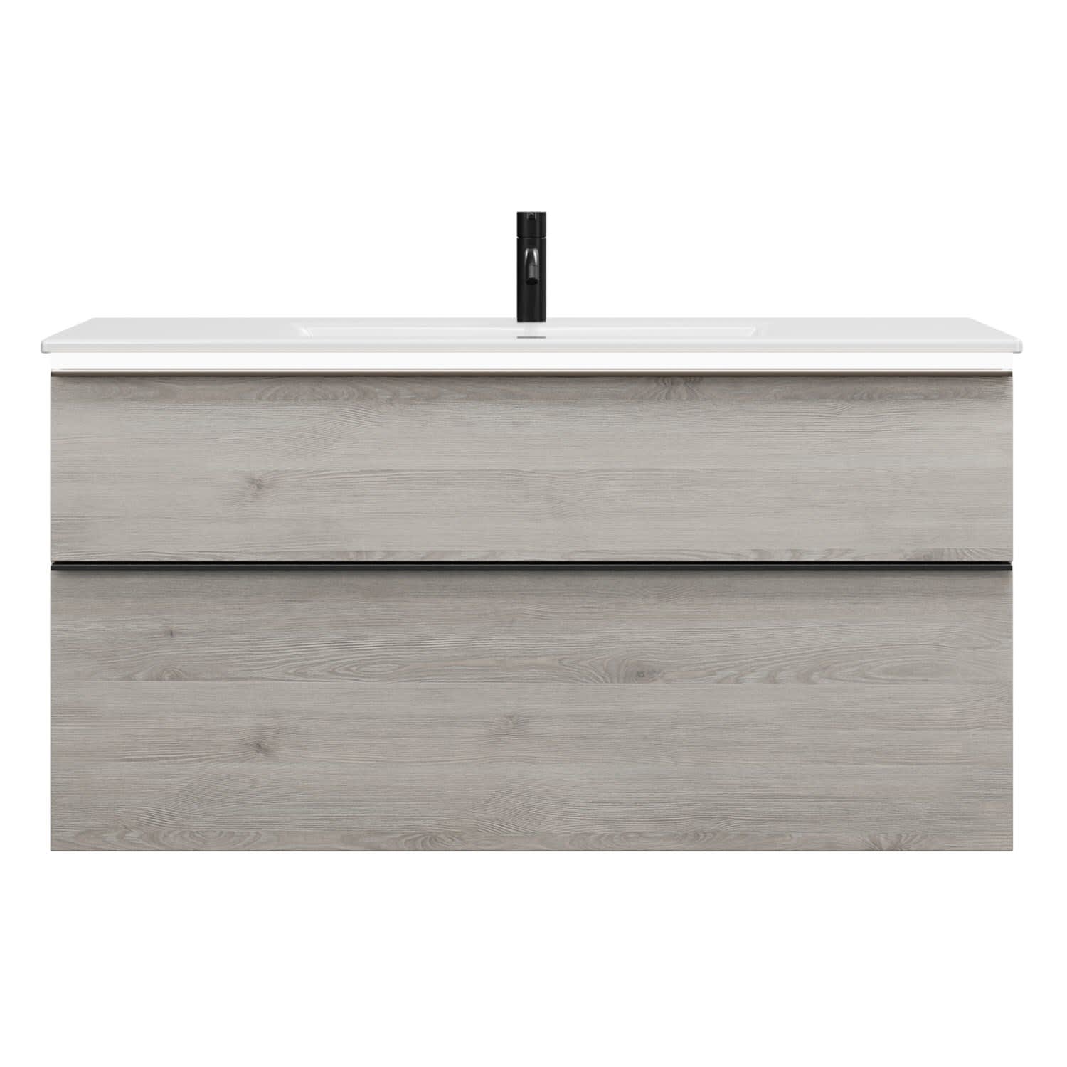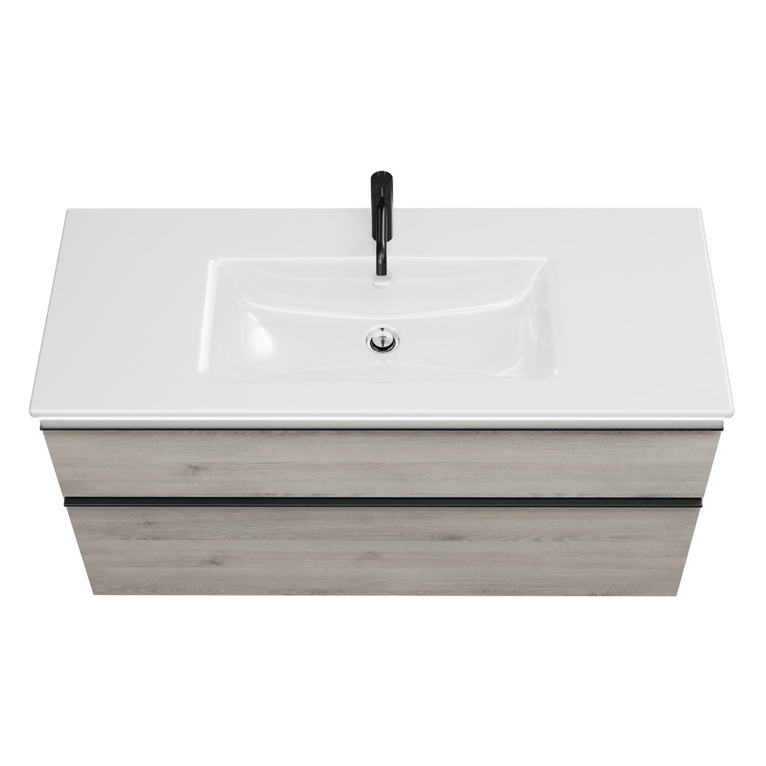 burgbad Eqio Waschtischkombination mit Keramik-Waschtisch Slim und LED-Beleuchtung, 122 cm, mit Griffleiste G0252