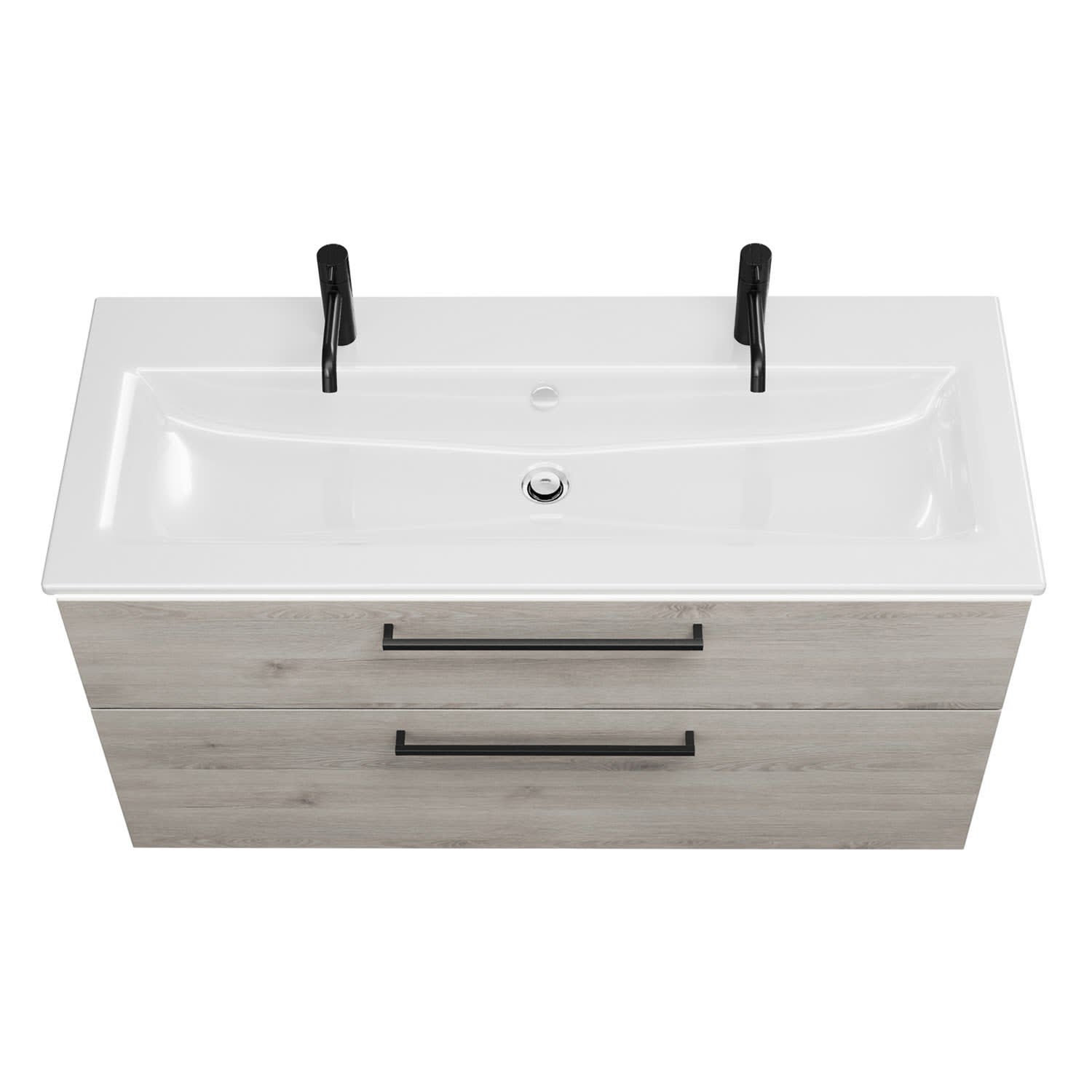 burgbad Eqio Waschtischkombination mit Keramik-Waschtisch Slim und LED-Beleuchtung, 122 cm, mit Stangengriff G0234