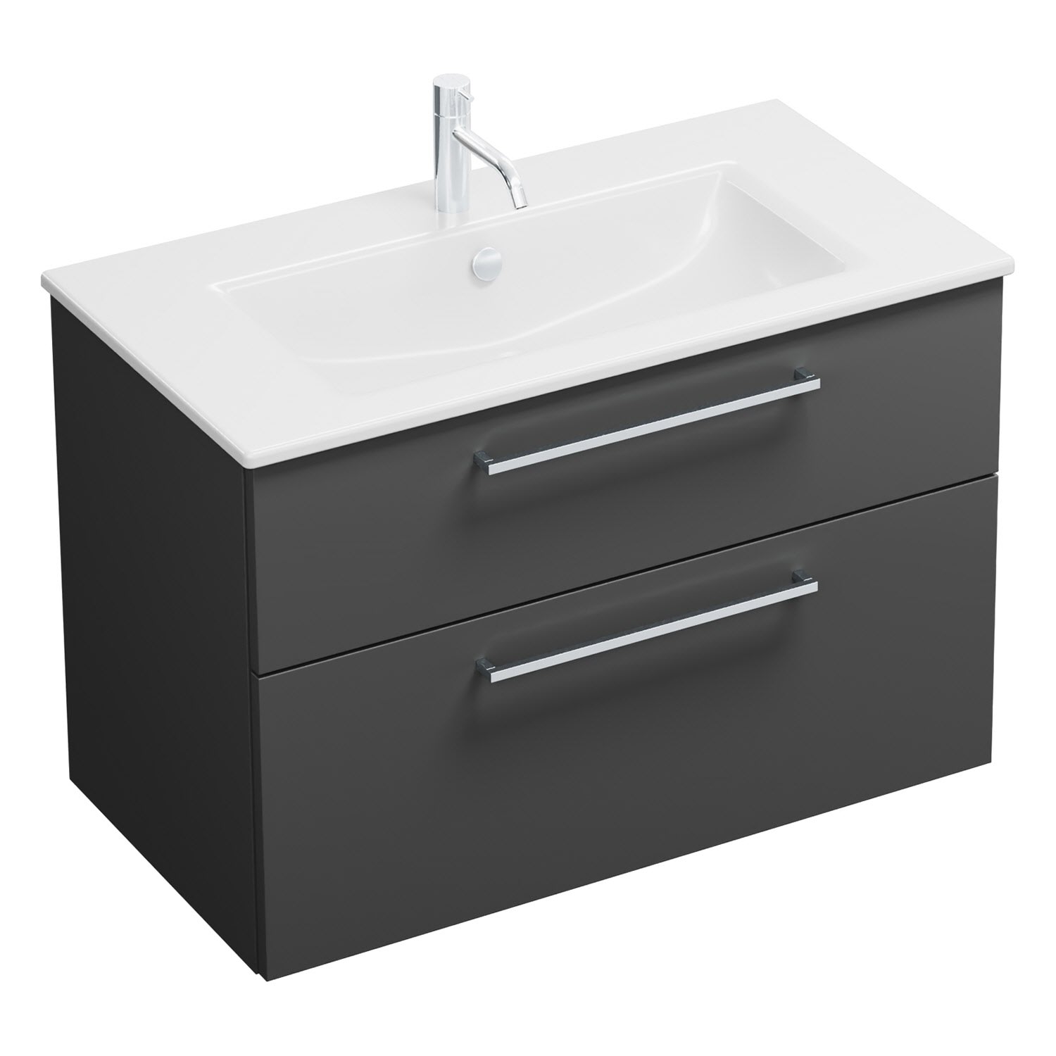 burgbad Eqio Waschtischkombination mit Keramik-Waschtisch Slim, 92 cm, mit Stangengriff P95