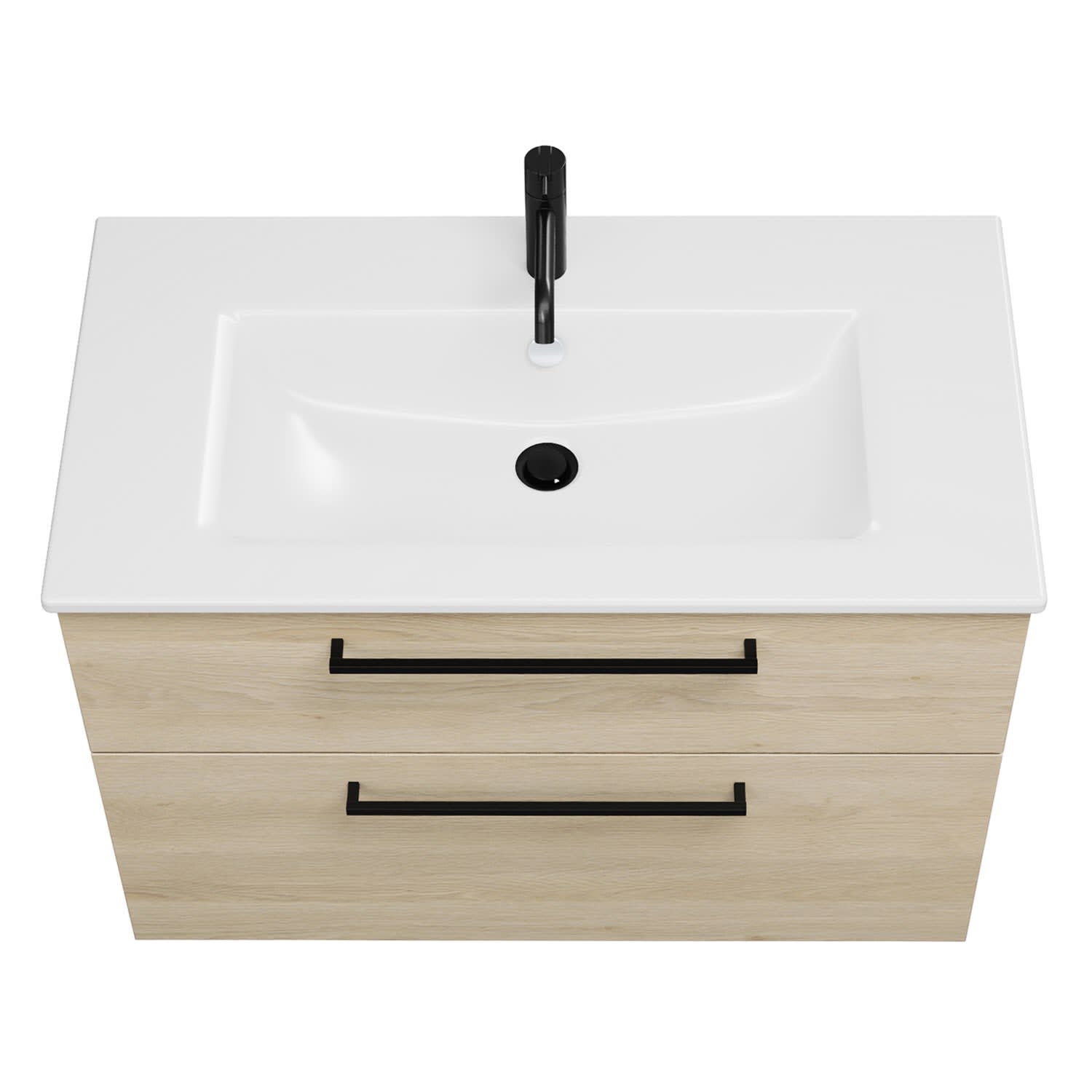 - 1 Schublade oben, 35 cm tief, mit Siphonausschnitt und Inneneinteilung