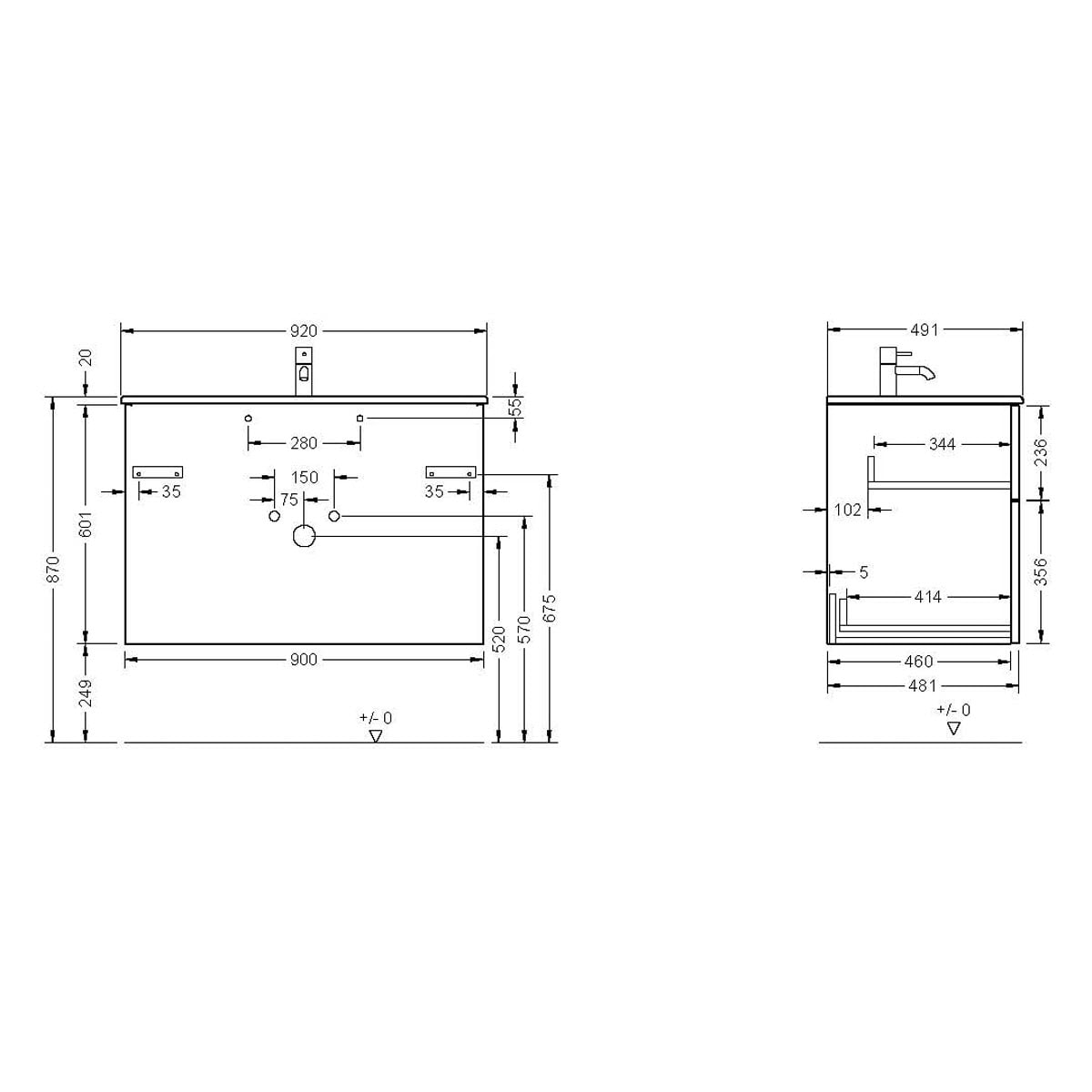 burgbad Eqio Waschtischkombination mit Keramik-Waschtisch Slim, 92 cm, mit Stangengriff G0234