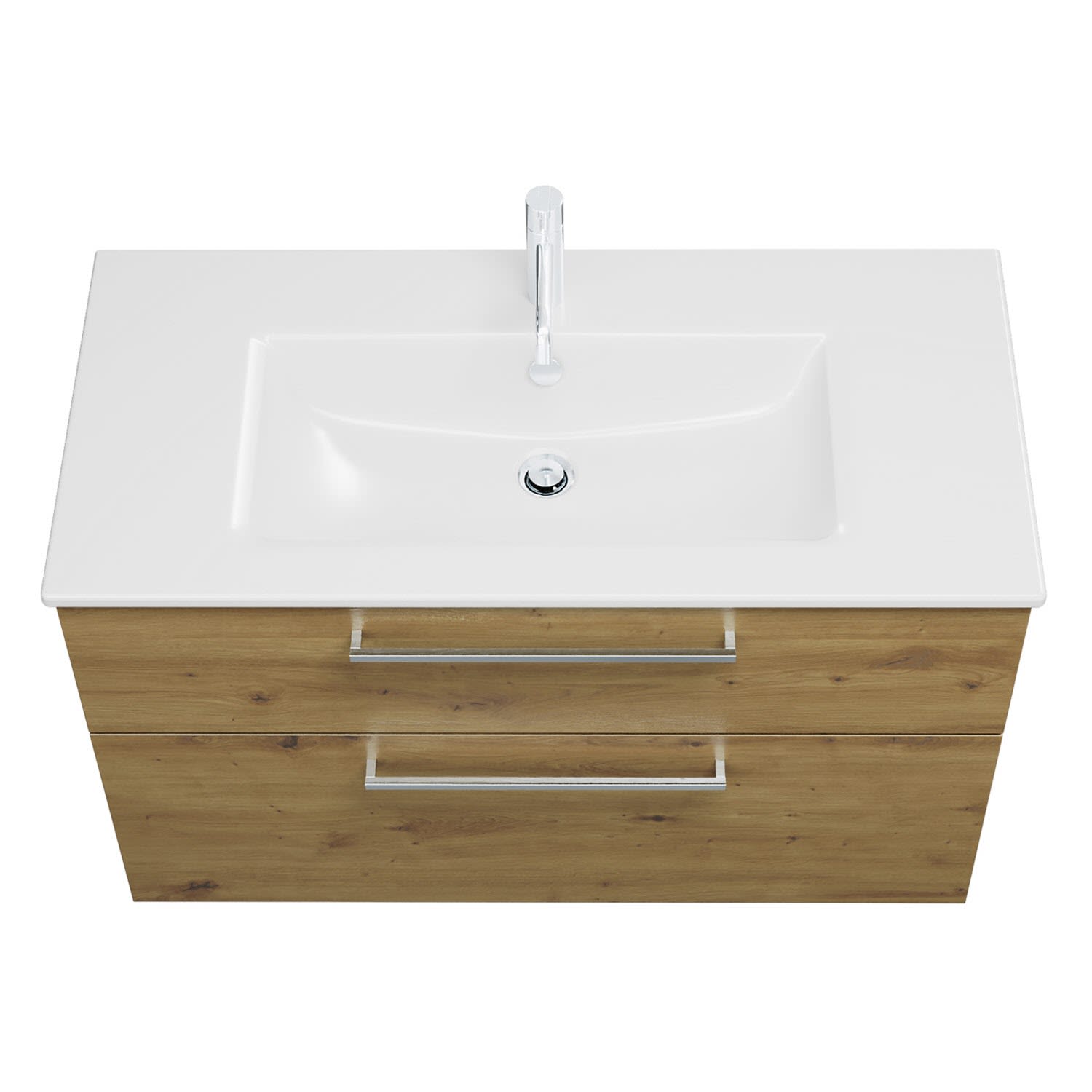 burgbad Eqio Waschtischkombination mit Keramik-Waschtisch Slim, 102 cm, mit Stangengriff P95