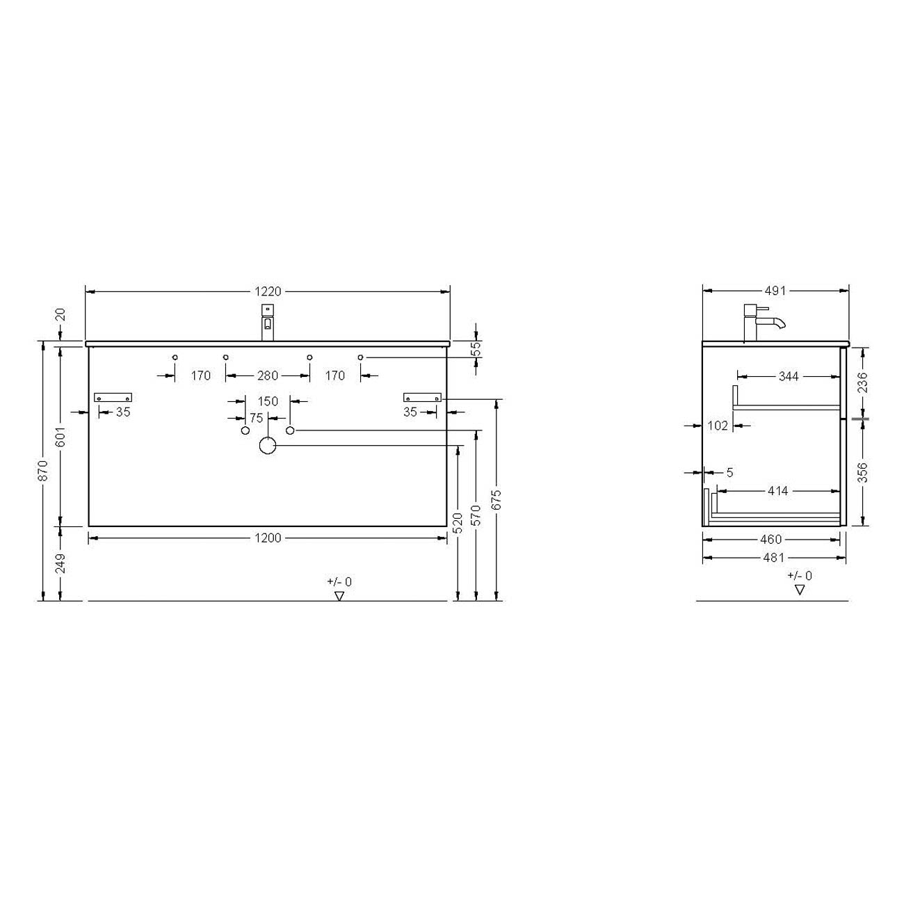burgbad Eqio Waschtischkombination mit Keramik-Waschtisch Slim, 122 cm, mit Stangengriff G0234