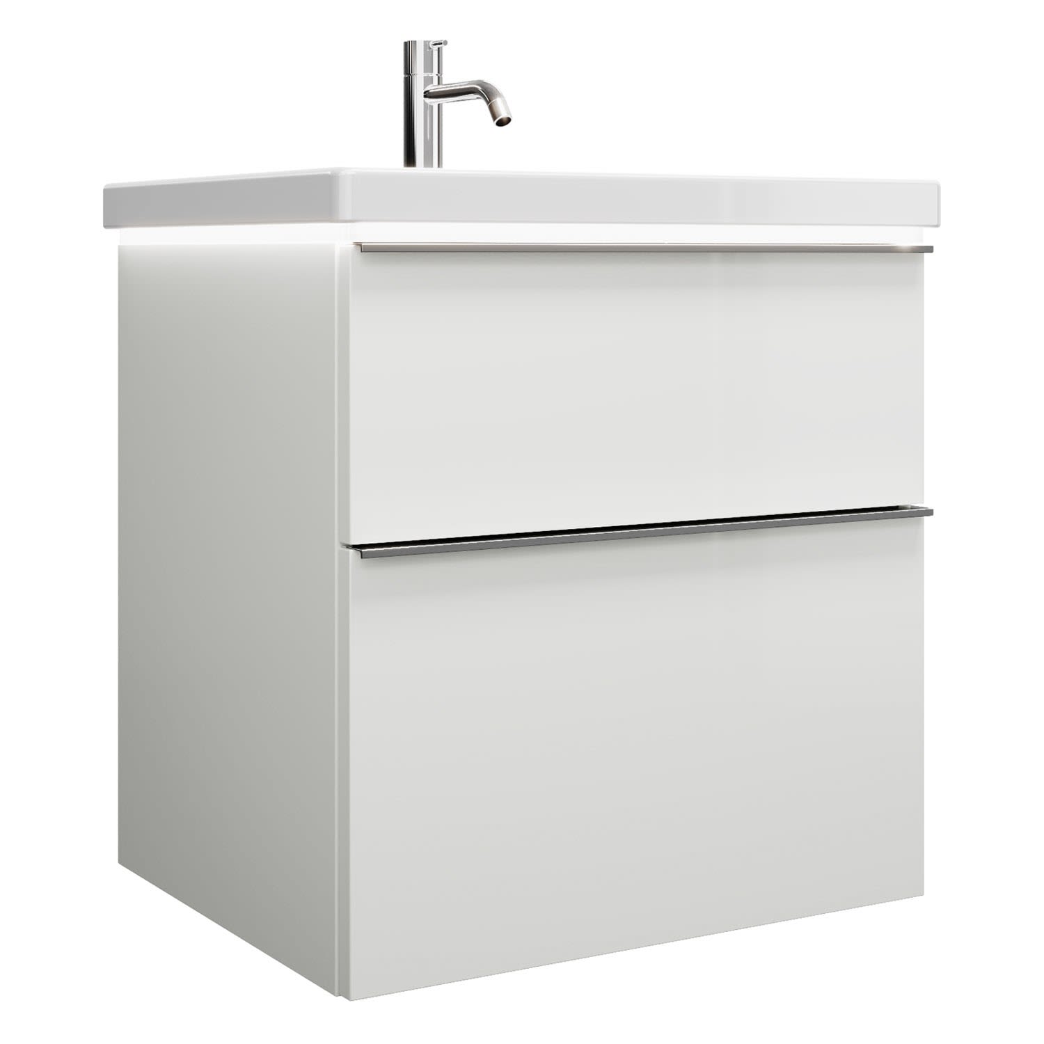 burgbad Eqio Waschtischkombination mit Keramik-Waschtisch mit LED-Beleuchtung, 63 cm, mit Griffleiste G0251