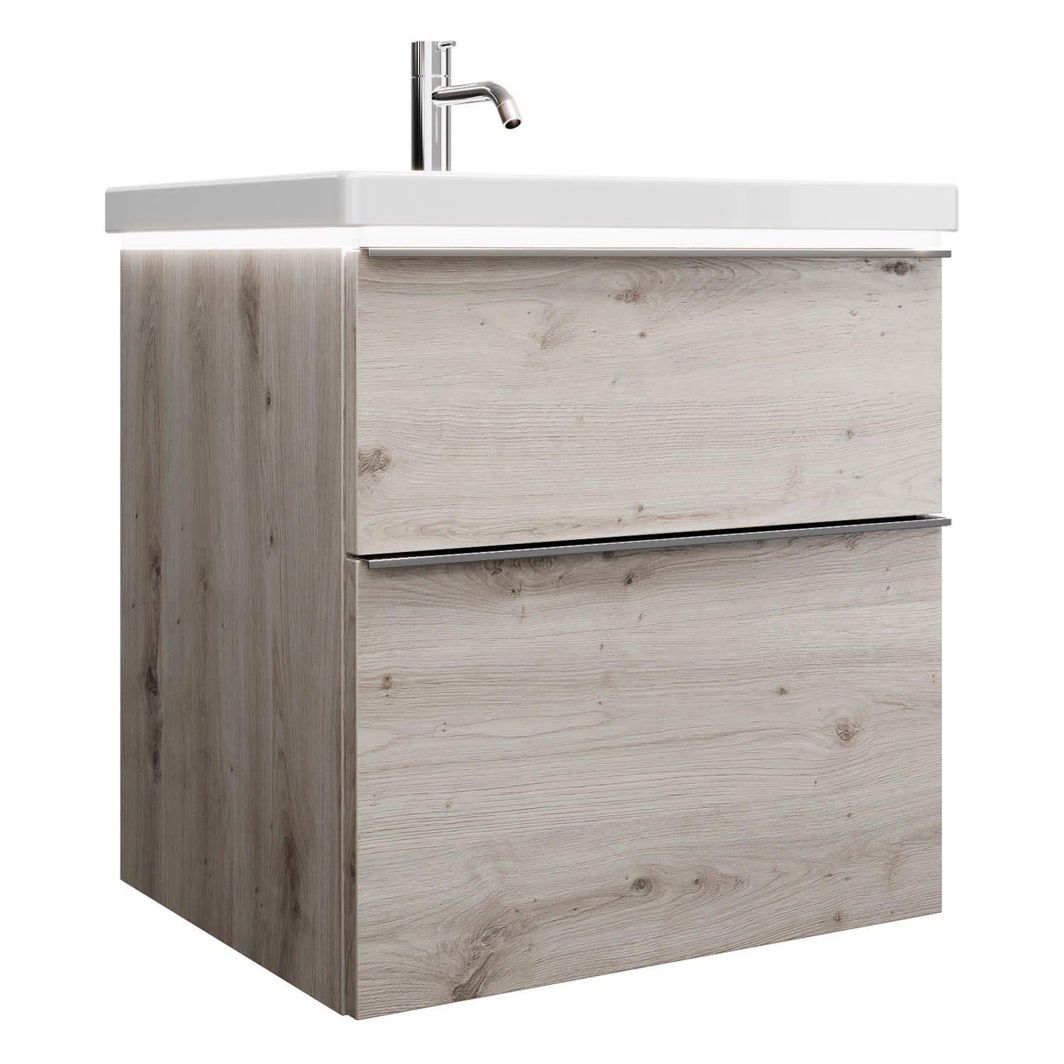 burgbad Eqio Waschtischkombination mit Keramik-Waschtisch mit LED-Beleuchtung, 63 cm, mit Griffleiste G0251