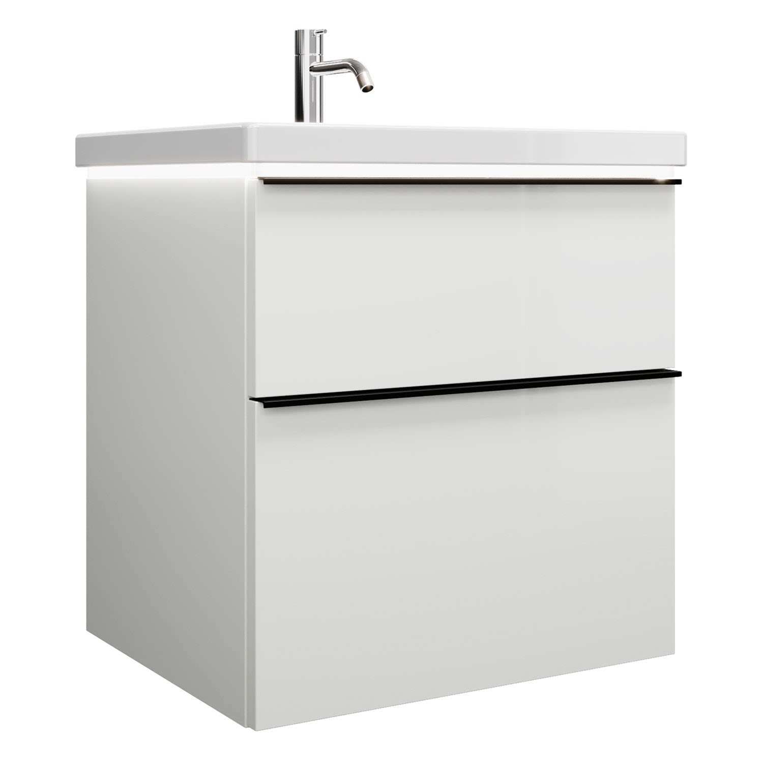 burgbad Eqio Waschtischkombination mit Keramik-Waschtisch mit LED-Beleuchtung, 63 cm, mit Griffleiste G0252