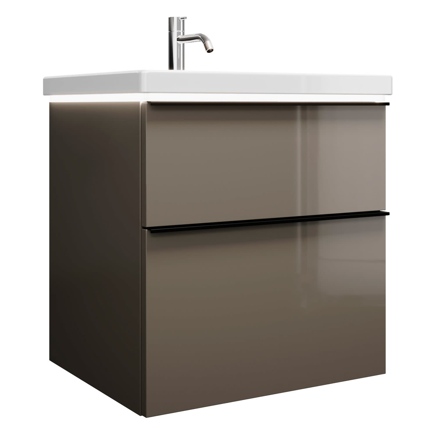 burgbad Eqio Waschtischkombination mit Keramik-Waschtisch mit LED-Beleuchtung, 63 cm, mit Griffleiste G0252