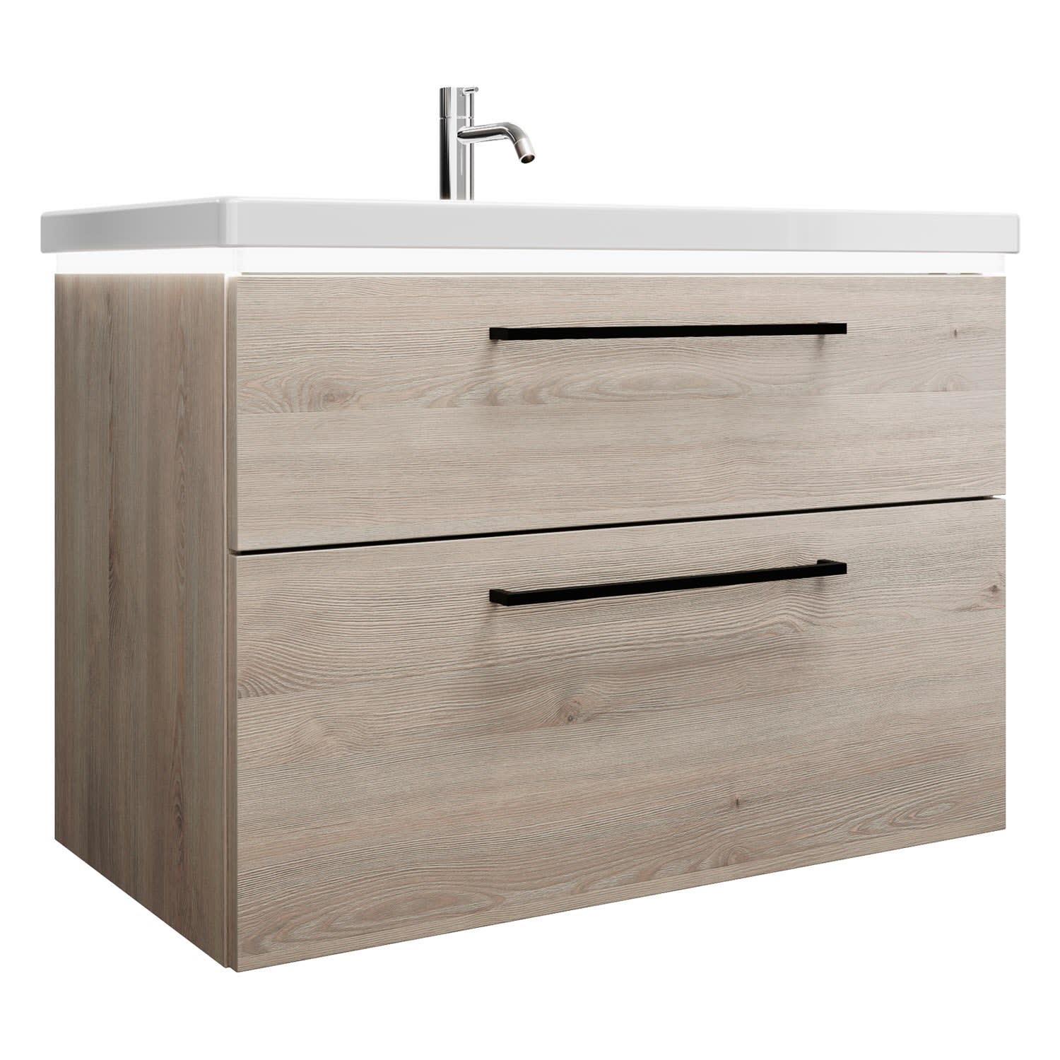burgbad Eqio Waschtischkombination mit Keramik-Waschtisch mit LED-Beleuchtung, 93 cm, mit Stangengriff G0234