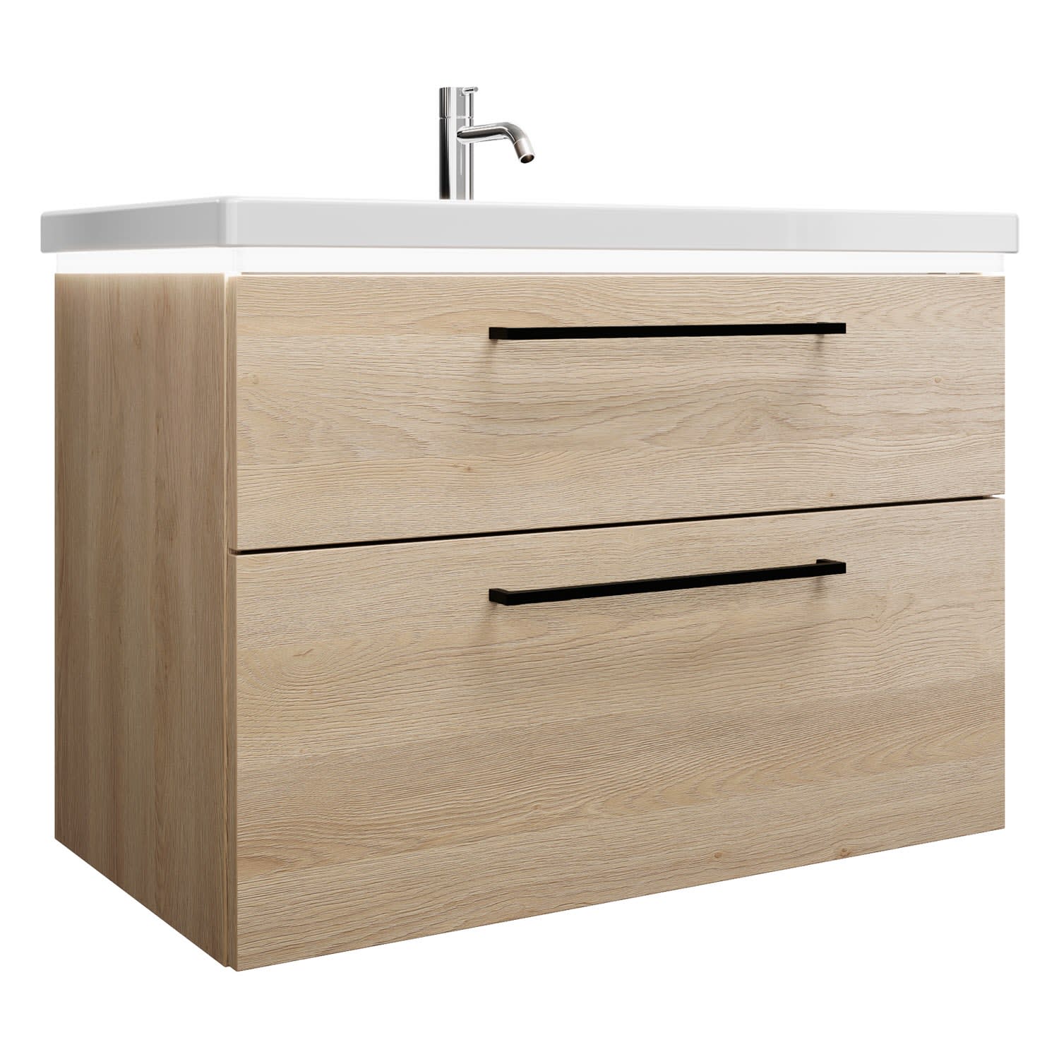burgbad Eqio Waschtischkombination mit Keramik-Waschtisch mit LED-Beleuchtung, 93 cm, mit Stangengriff G0234