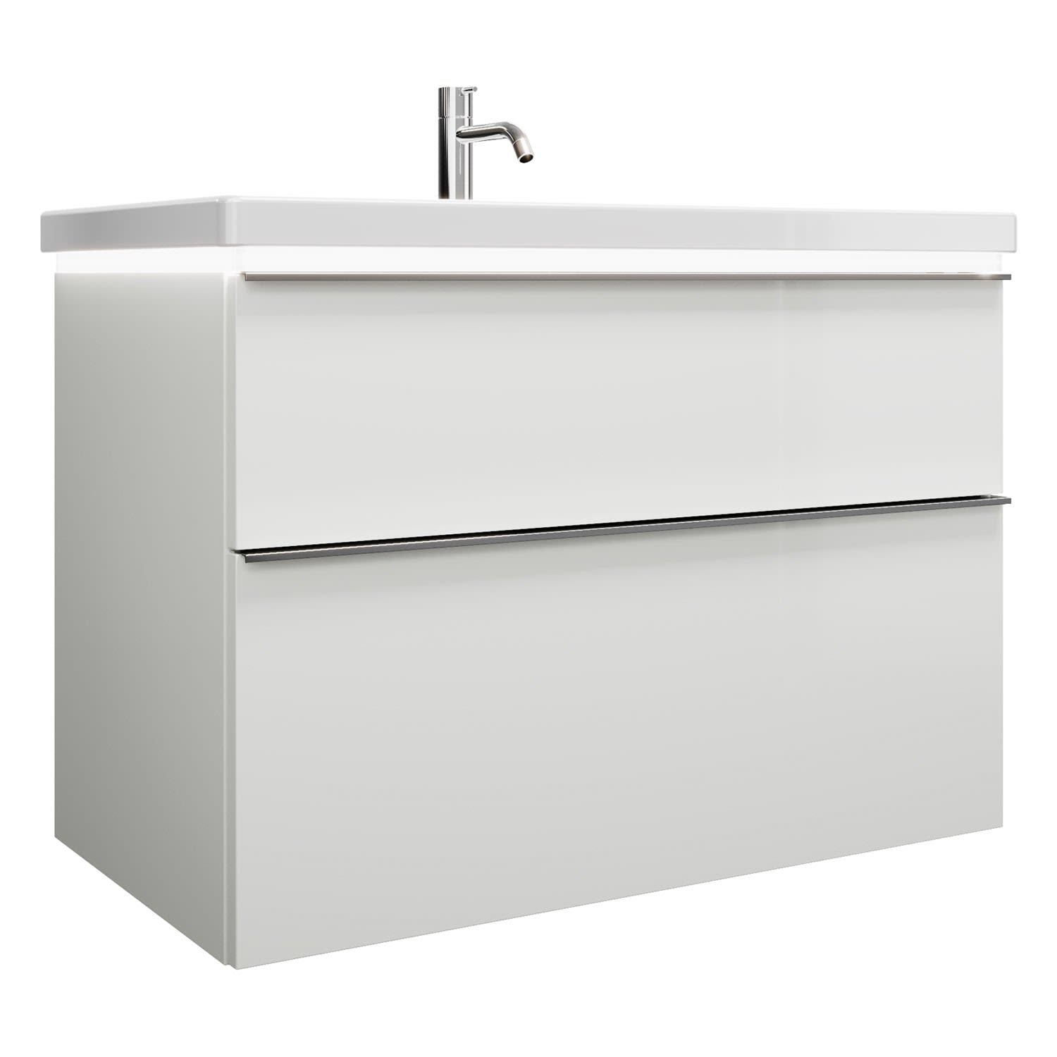 burgbad Eqio Waschtischkombination mit Keramik-Waschtisch mit LED-Beleuchtung, 93 cm, mit Griffleiste G0251