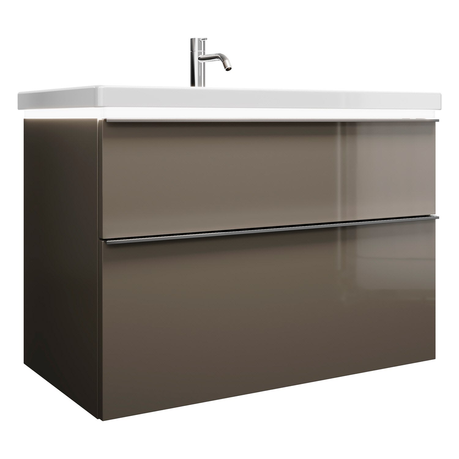 burgbad Eqio Waschtischkombination mit Keramik-Waschtisch mit LED-Beleuchtung, 93 cm, mit Griffleiste G0251